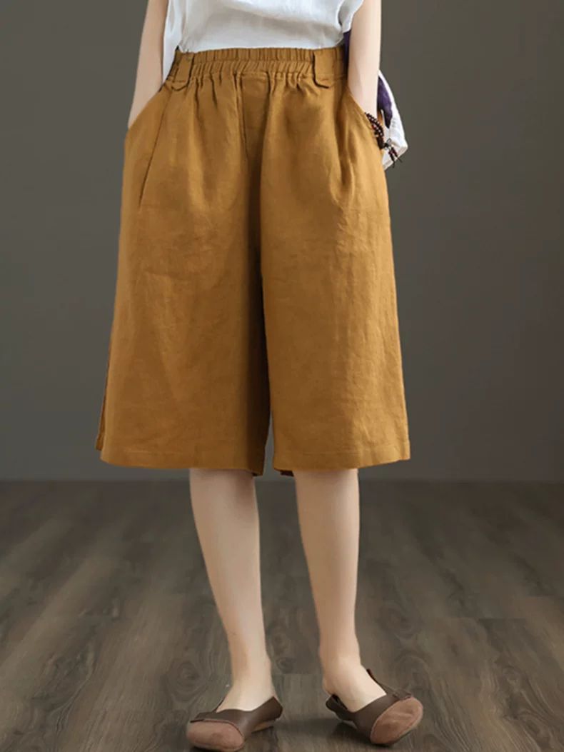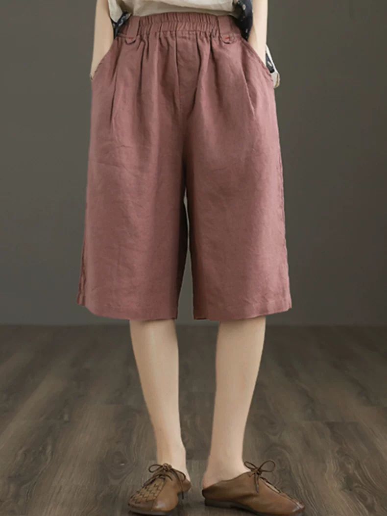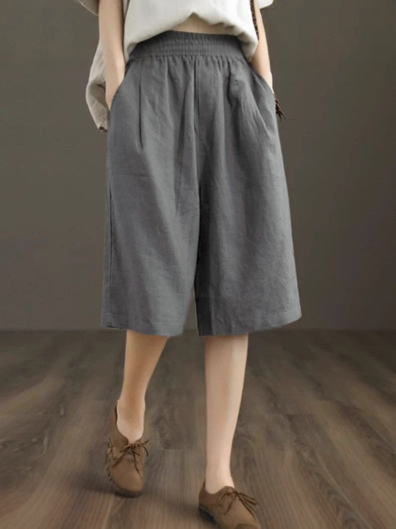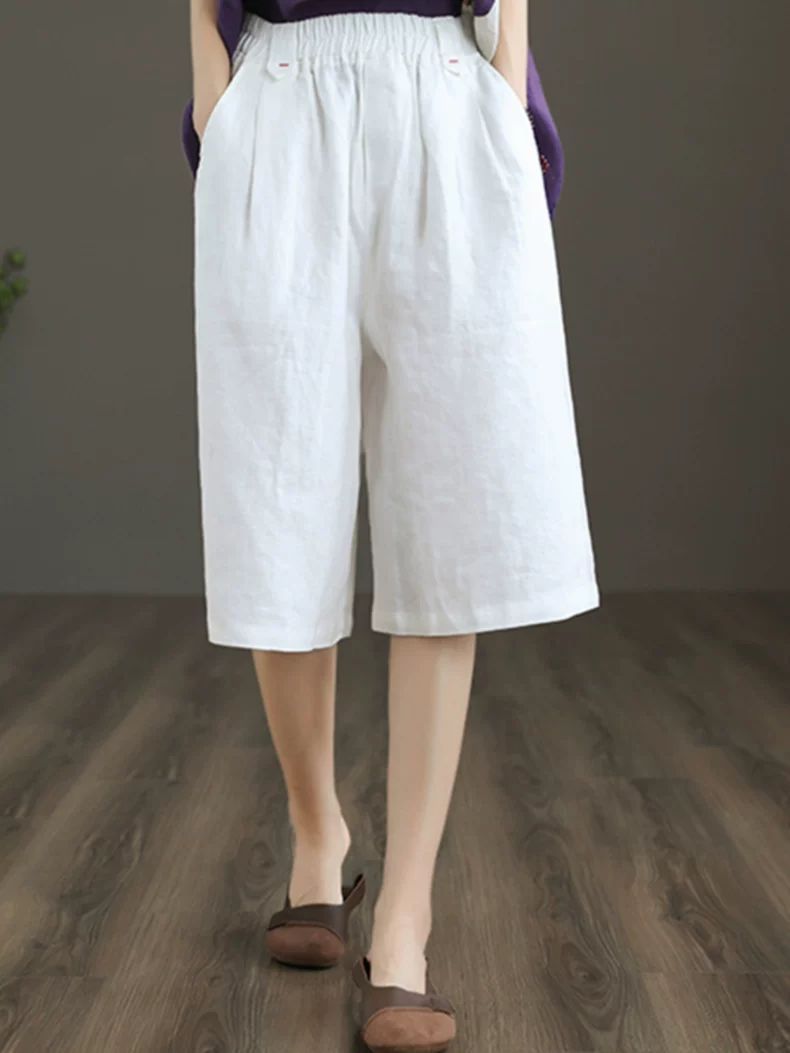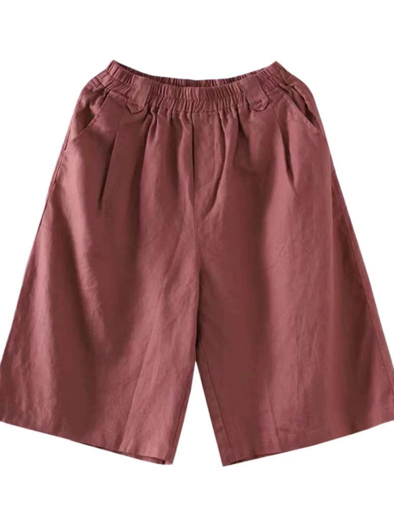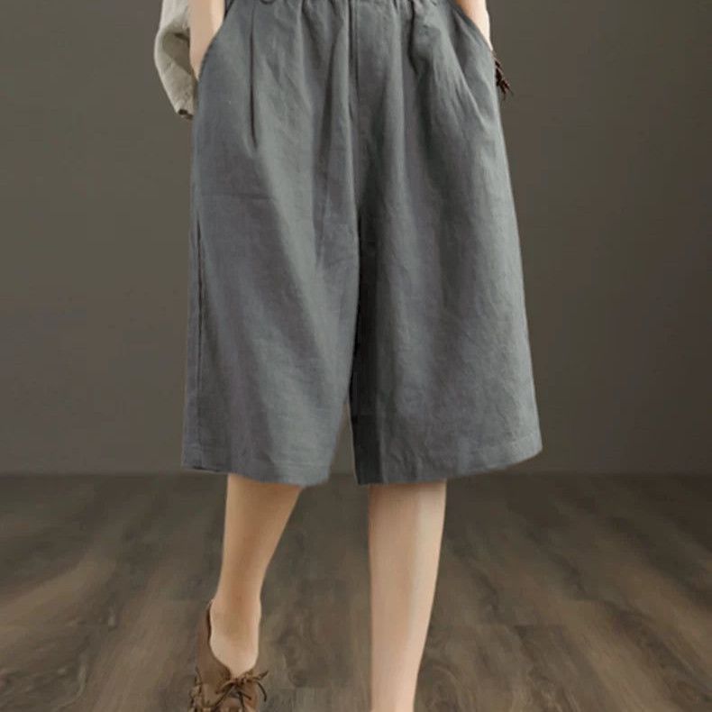 Главная страница > Женские тонкие укороченные шорты из хлопка и льна, новинка лета 2025 года, широкие брюки для мам больших размеров