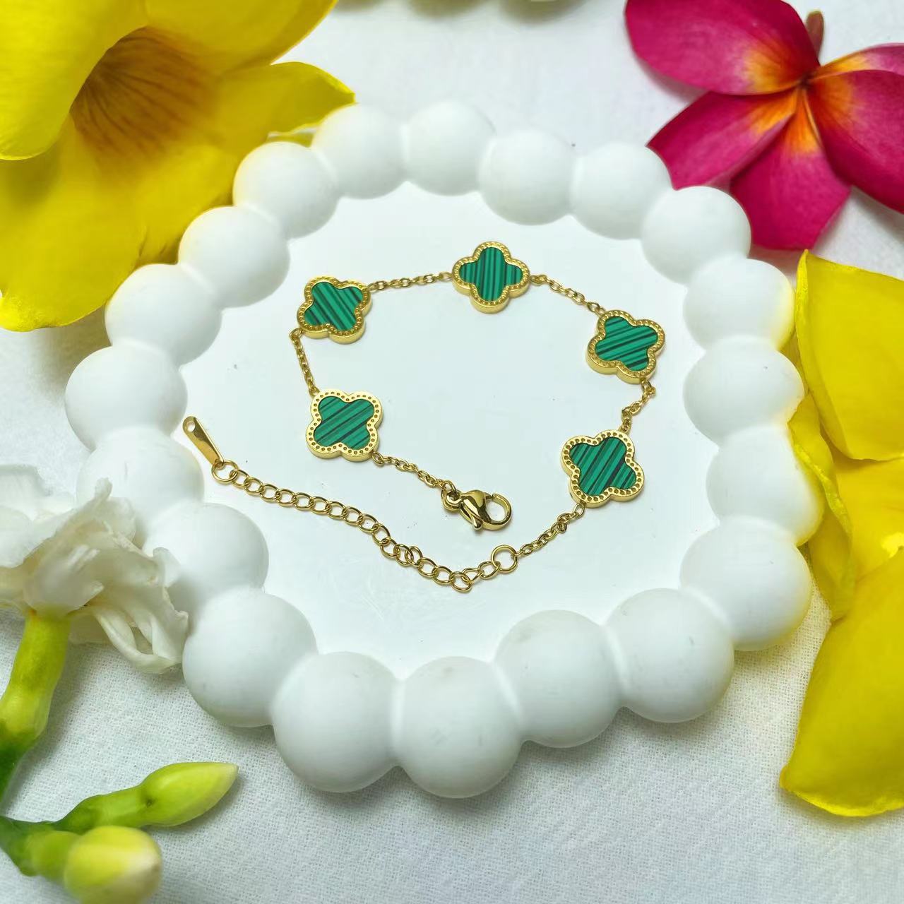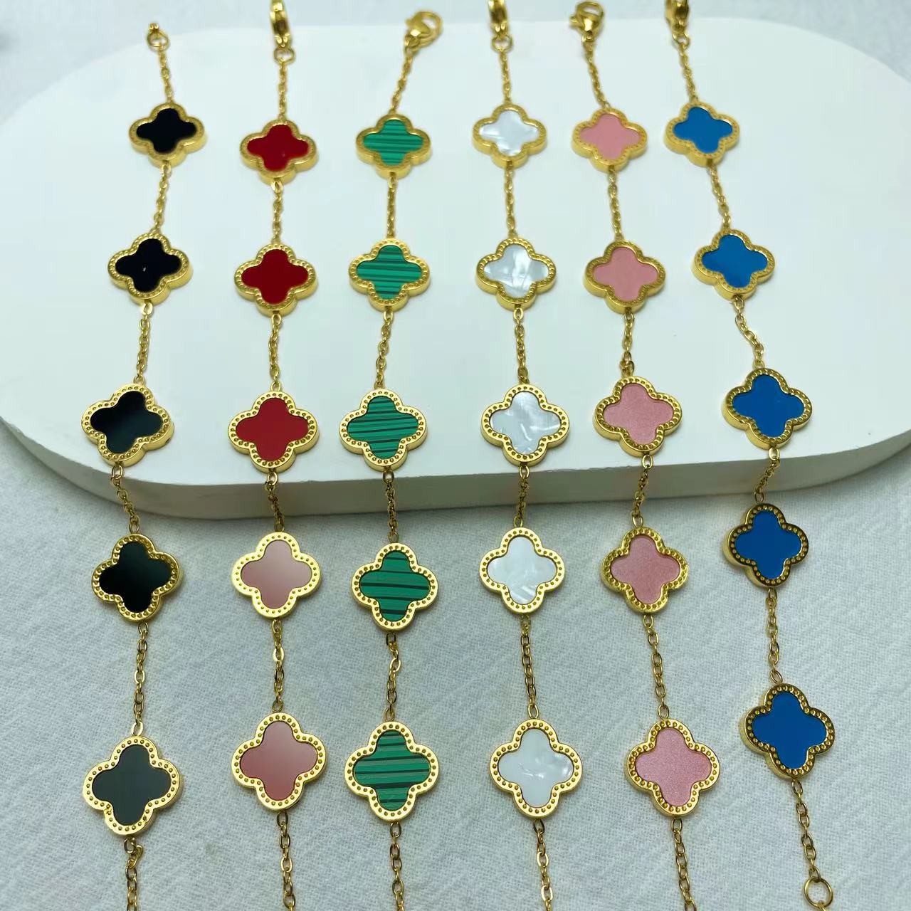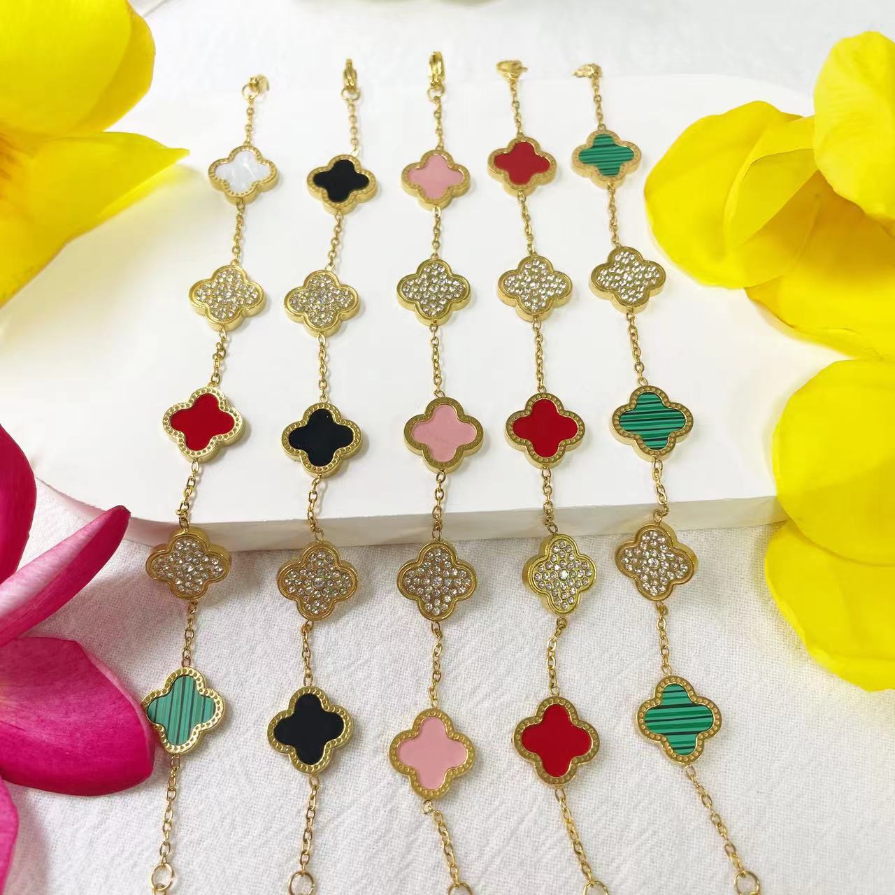 Трансграничная электрическая коммерция взрывы онлайн красный модный четырехлистный циркон односторонний браслет женская оболочка прилив персонализированный дизайн браслет