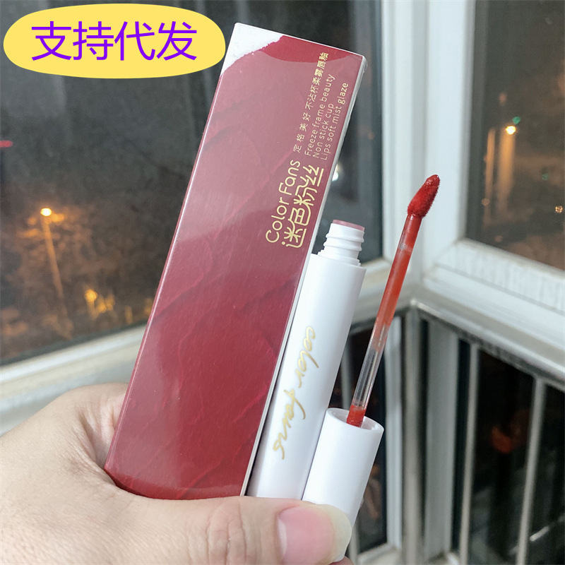 Камуфляжные веера фиксированная сетка Красивая антипригарная чашка Мягкий туман глазурь для губ Белый дешевый студент Ретро помидор красный матовая грязь для губ