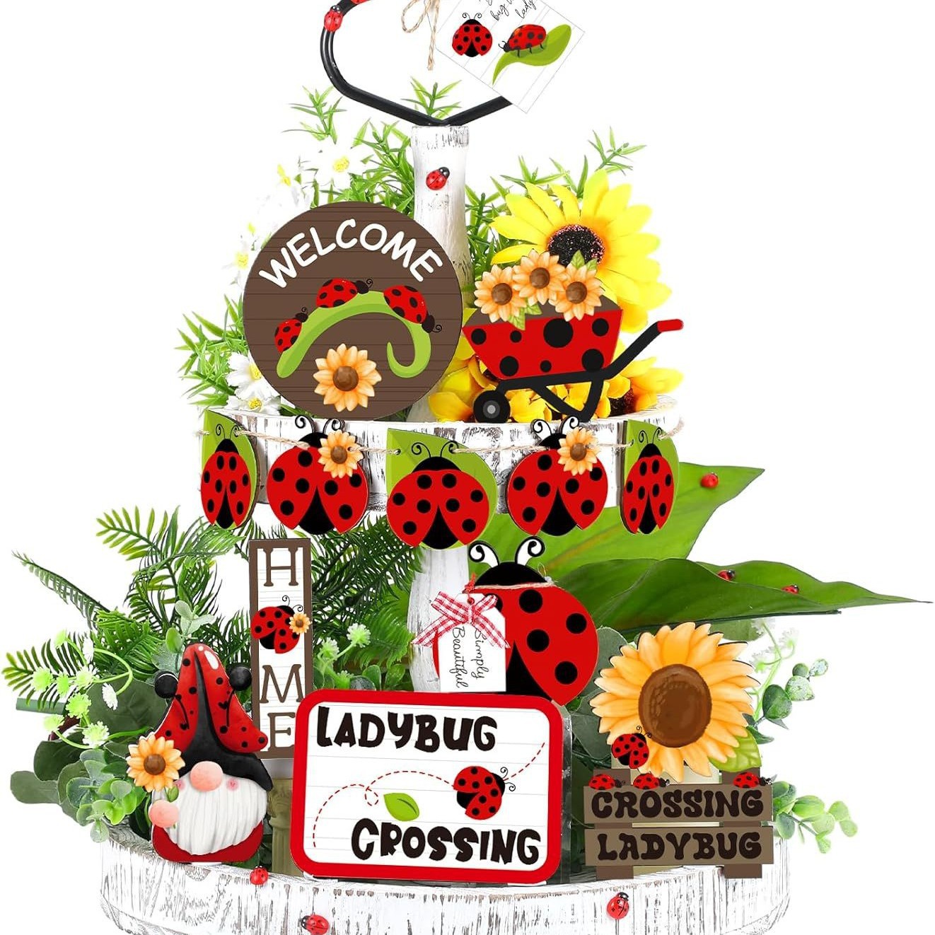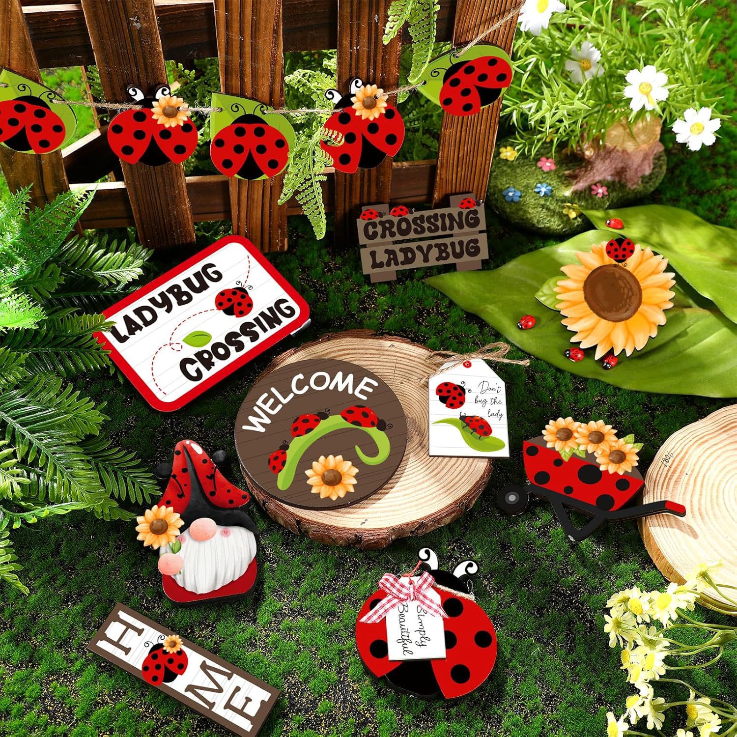 14 шт. Летняя божья коровка логотип многослойный поднос деревянный орнамент деревенский дом божья коровка вывеска столешница декоративный орнамент