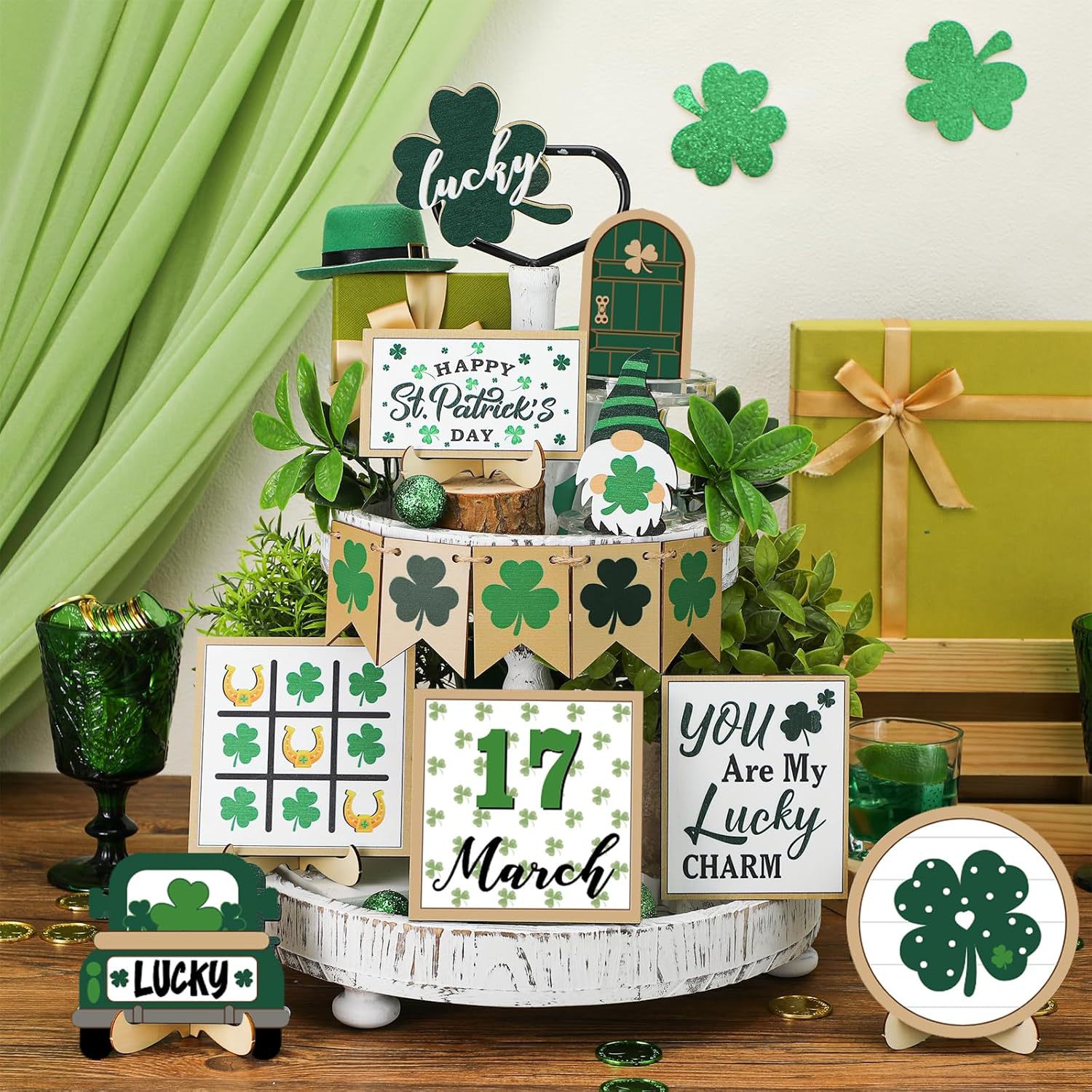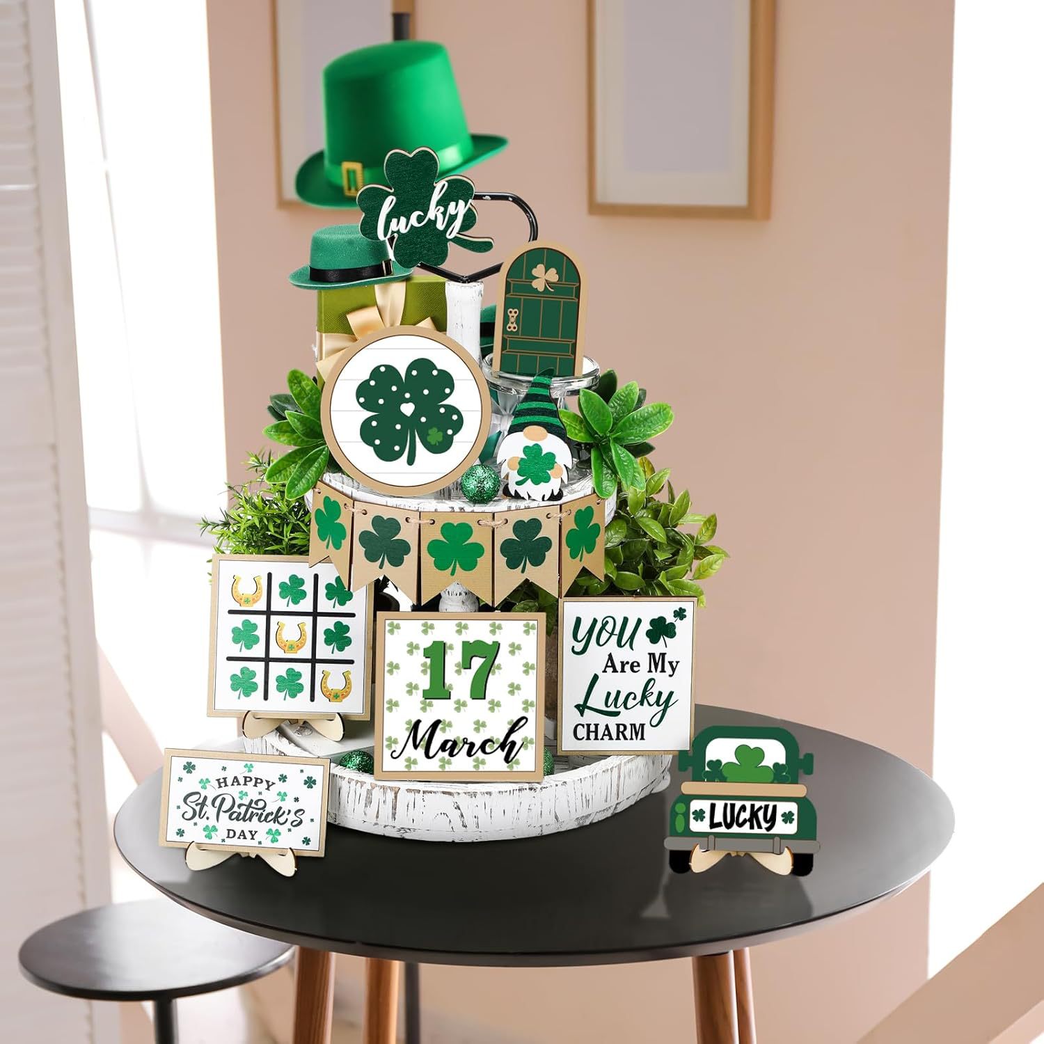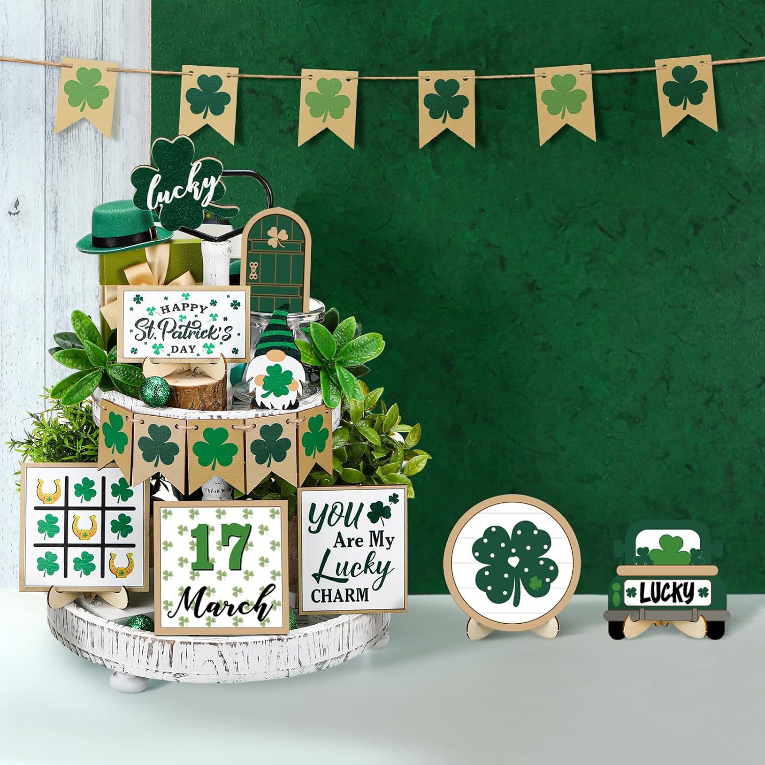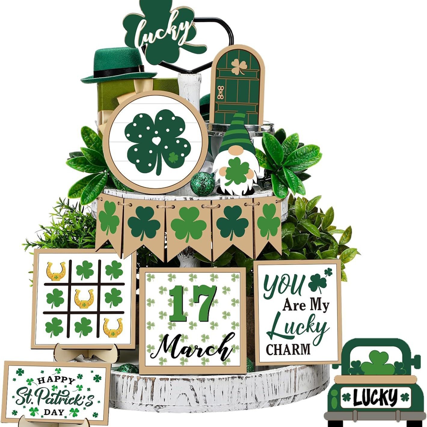 Главная страница > 14 шт. Поднос День Святого Патрика Декоративный Зеленый Клевер Грузовик Гномы Деревенский Фермерский Стол Декор
