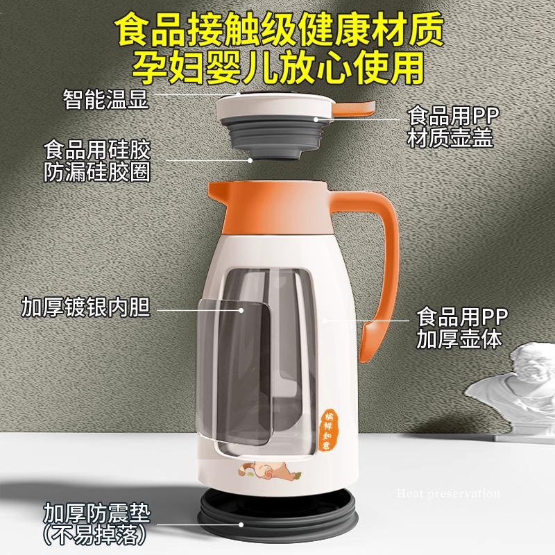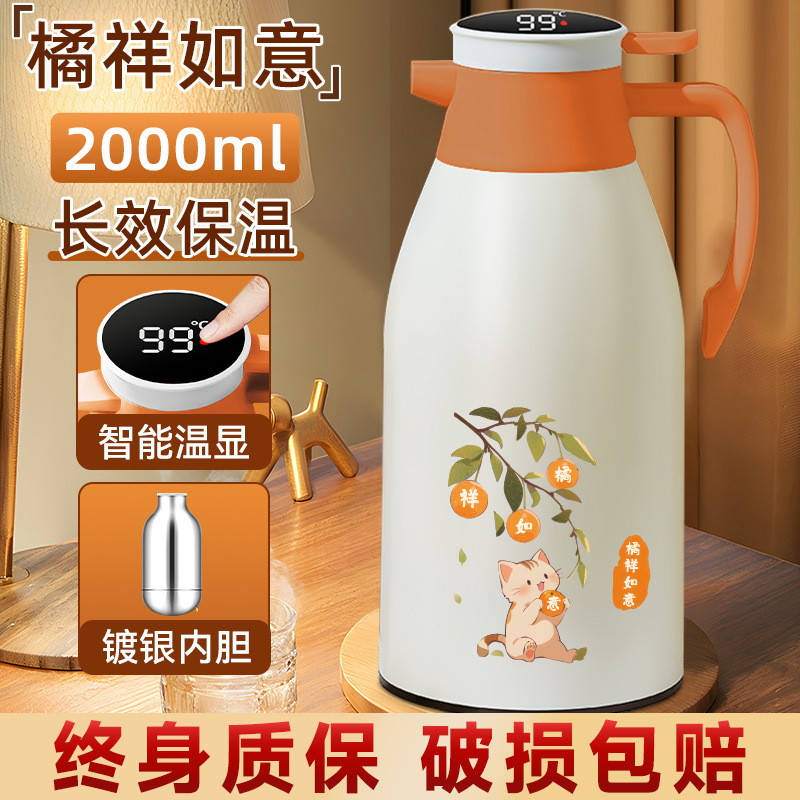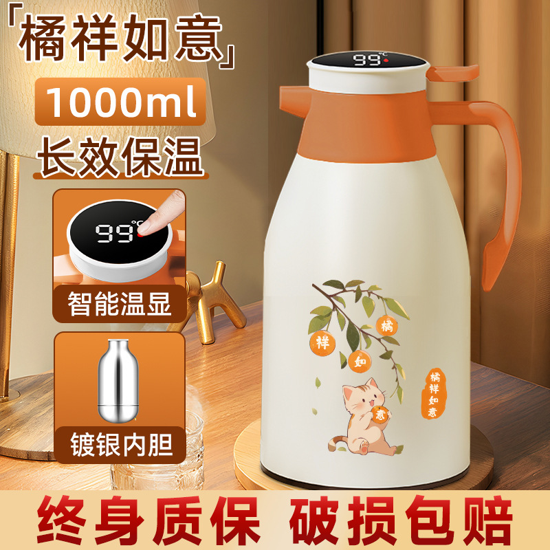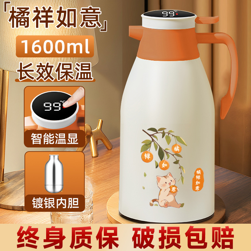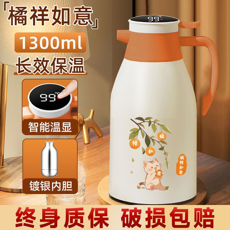 Главная страница > Термос с стеклянной вставкой, большой емкости, с дисплеем температуры, для горячей воды, бытовой изолированный чайник.