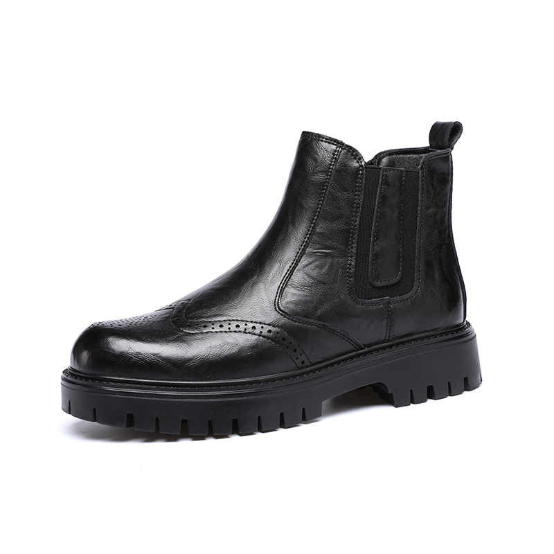 Главная страница > Мужские сапоги Челси чувство высокого уровня Британские табачные сапоги резные остроконечные короткие сапоги повседневные черные сапоги Martin кожаные сапоги