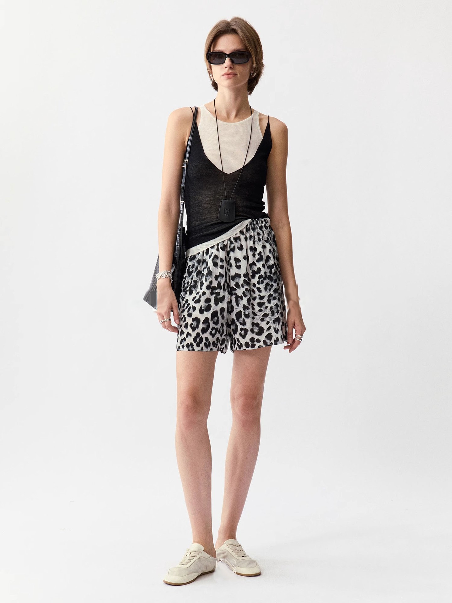TH~ROW женские брюки с леопардовым принтом крепдешин шелковый шелк элегантный Парижская юбка с леопардовым принтом рыбий хвост шорты воздушные брюки для женщин