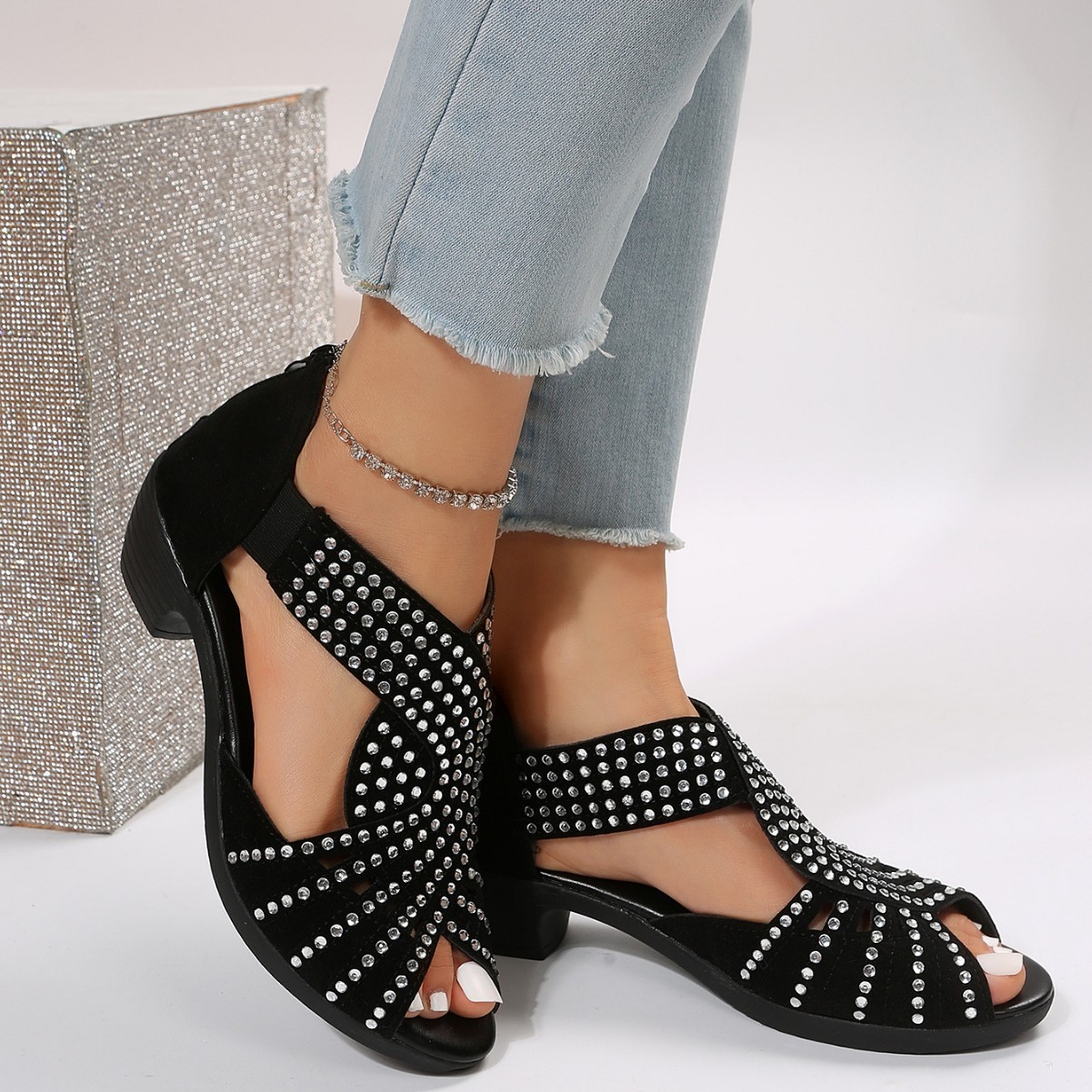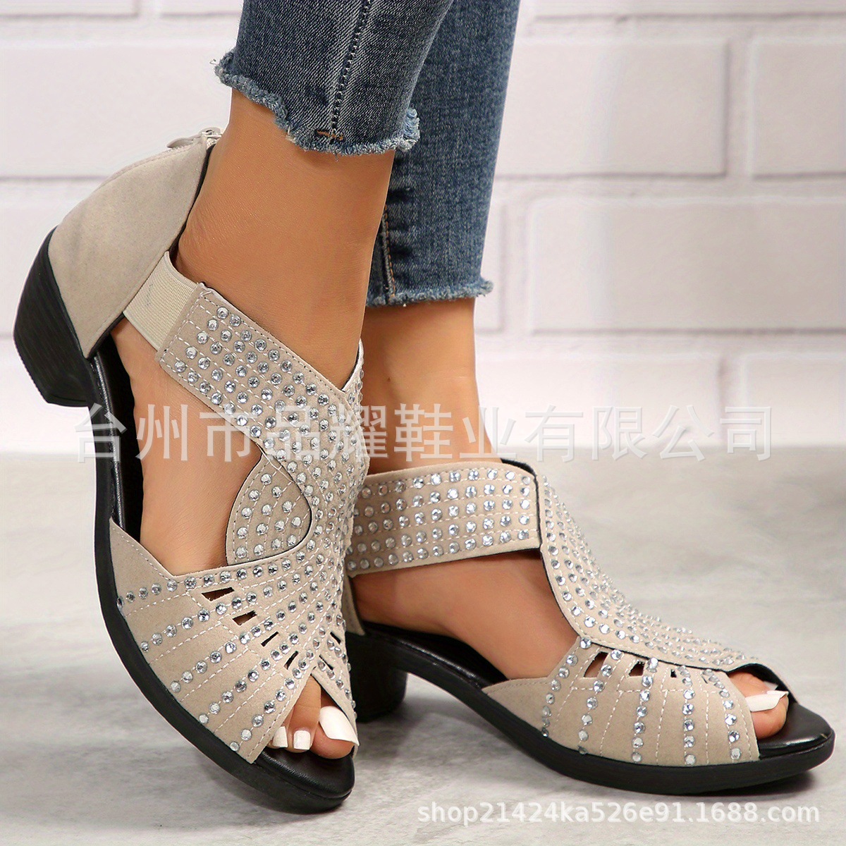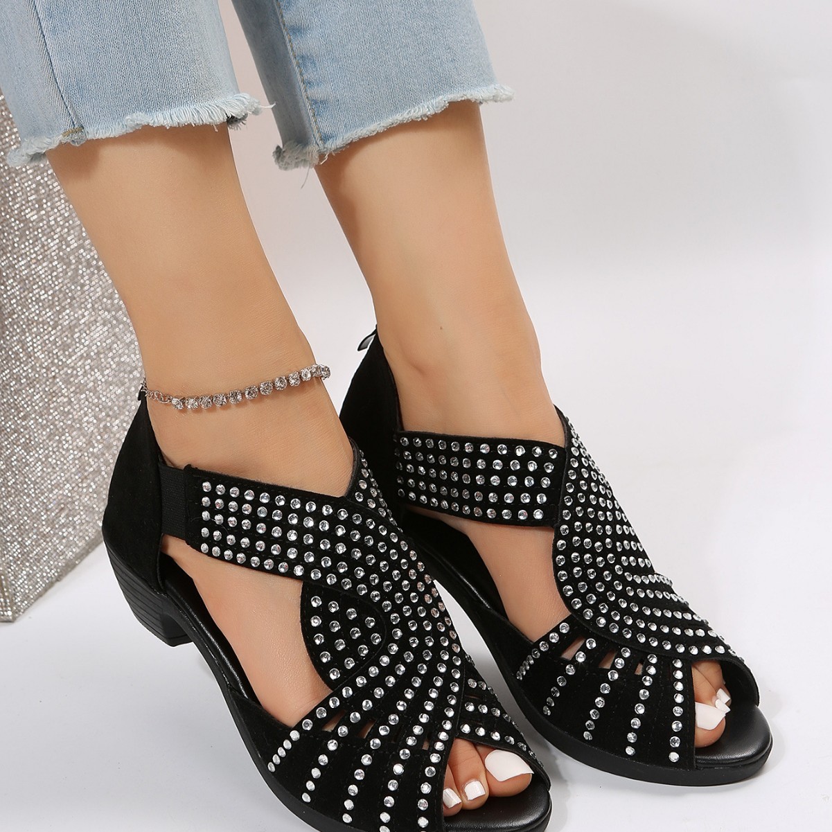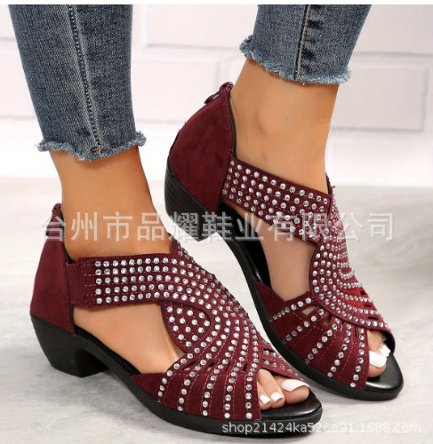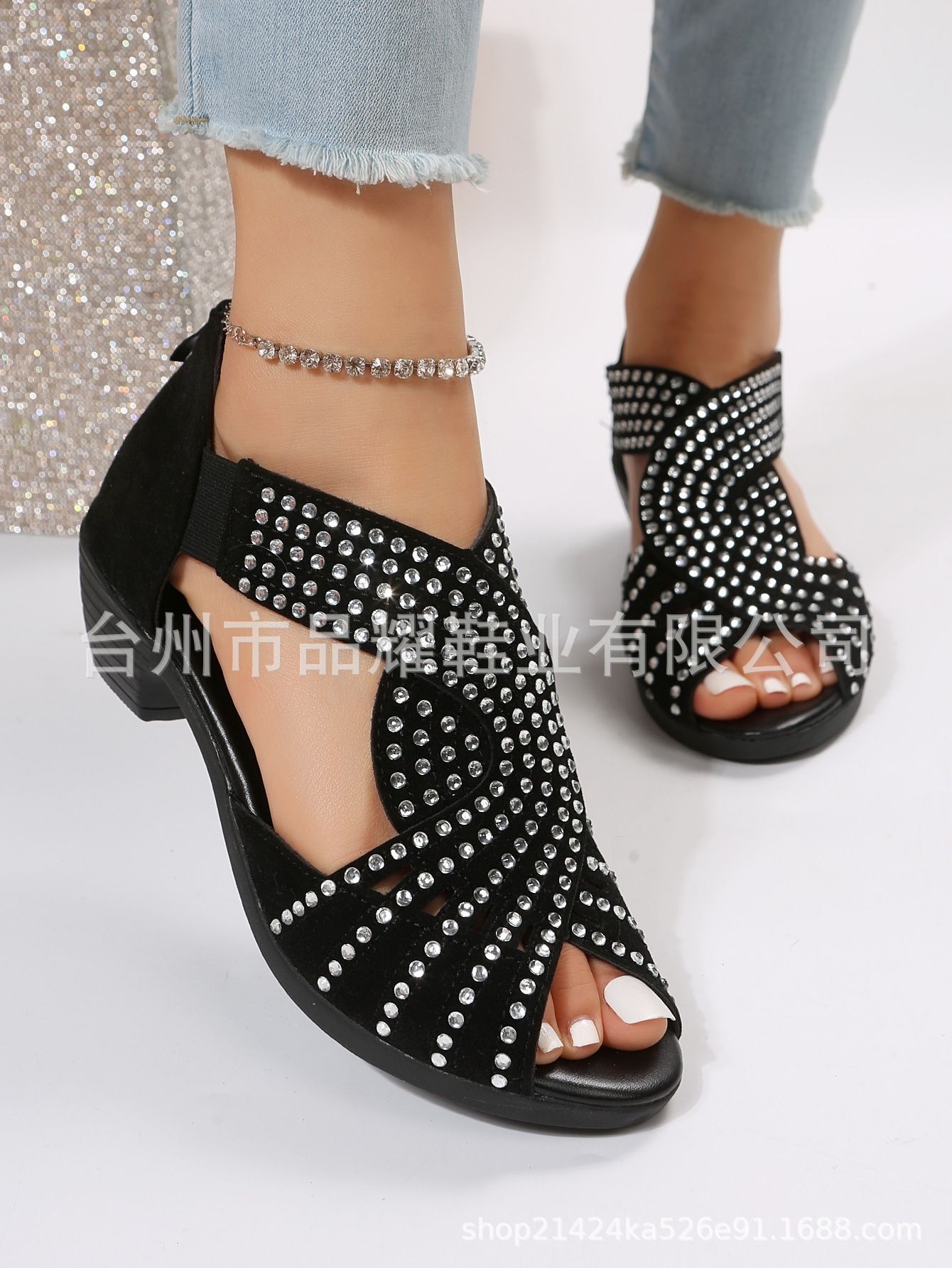 Главная страница > Летние сандалии 2023 для женщин на низком каблуке с камнями, на толстом каблуке, большие размеры, женская обувь