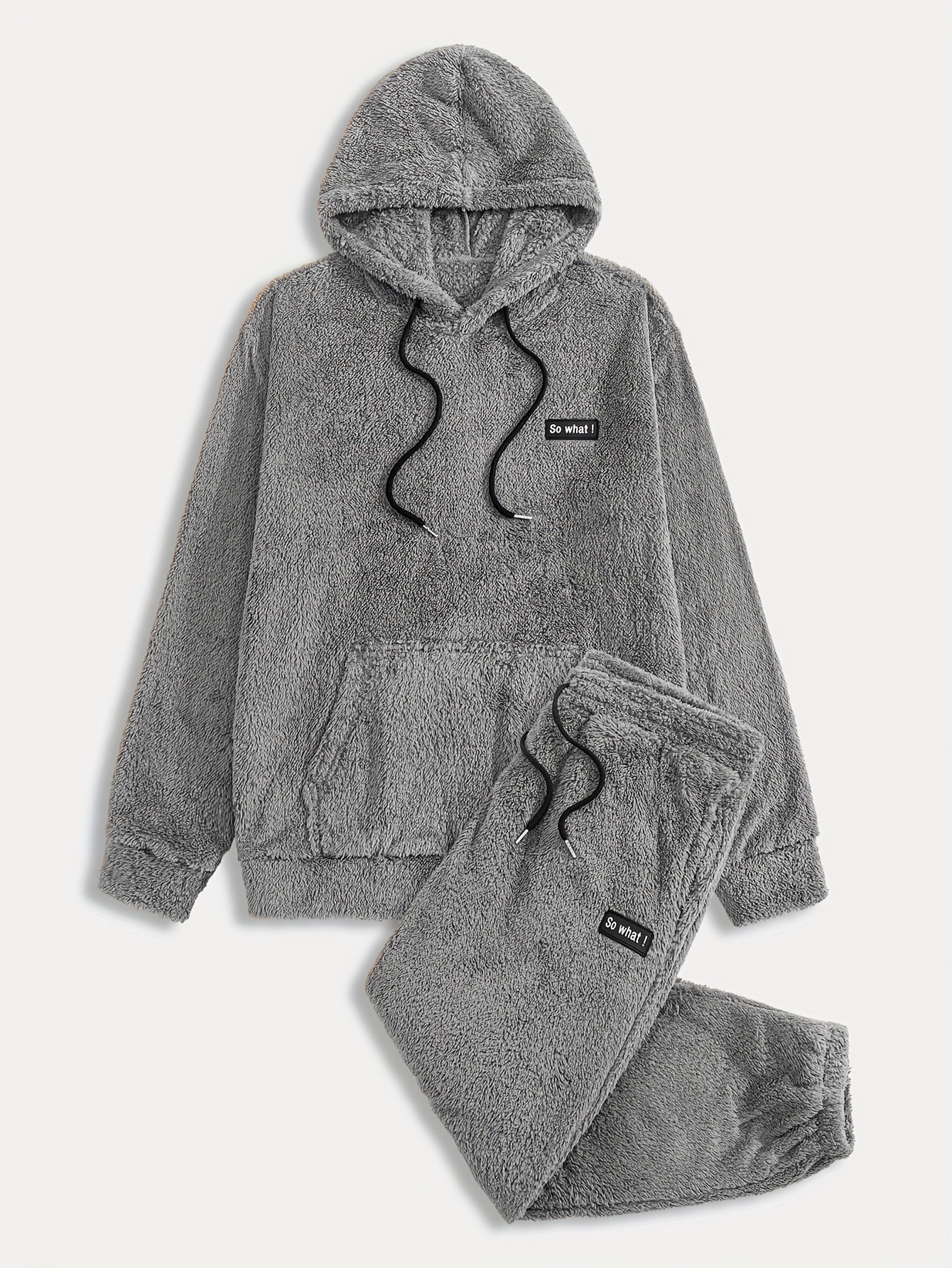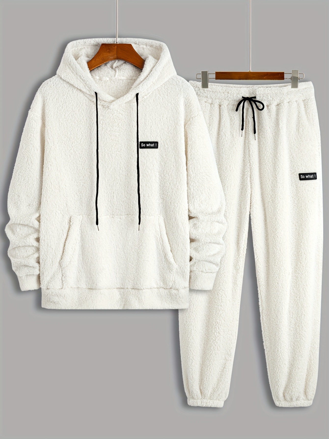 Главная страница > Осенне-зимний мужской костюм из овечьей шерсти с капюшоном, флисовая толстовка + брюки, комплект из двух предметов, теплый домашний повседневный костюм