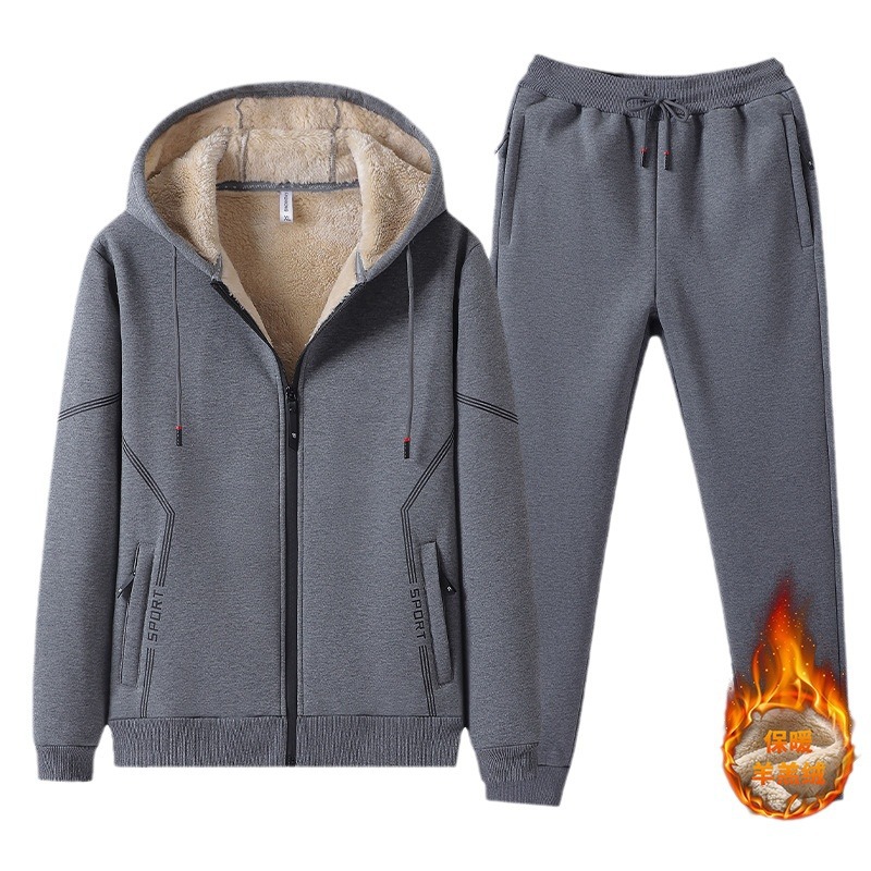 Главная страница > 2024 новый овечий толстый спортивный костюм осенний и зимний мужской плюшевый кардиган из двух частей свитер