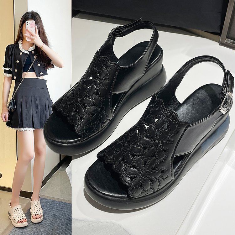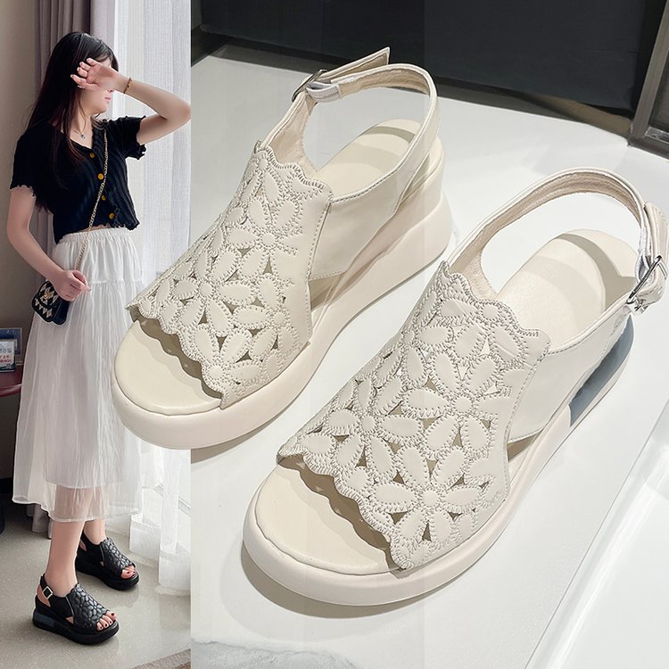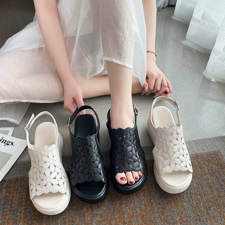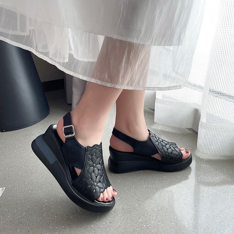 Главная страница > Женские сандалии на танкетке на платформе 2024 года, новые летние женские туфли на высоком каблуке с открытым носком, полая обувь на платформе, увеличивающая рост
