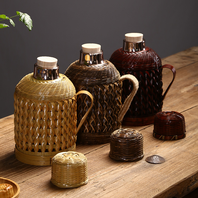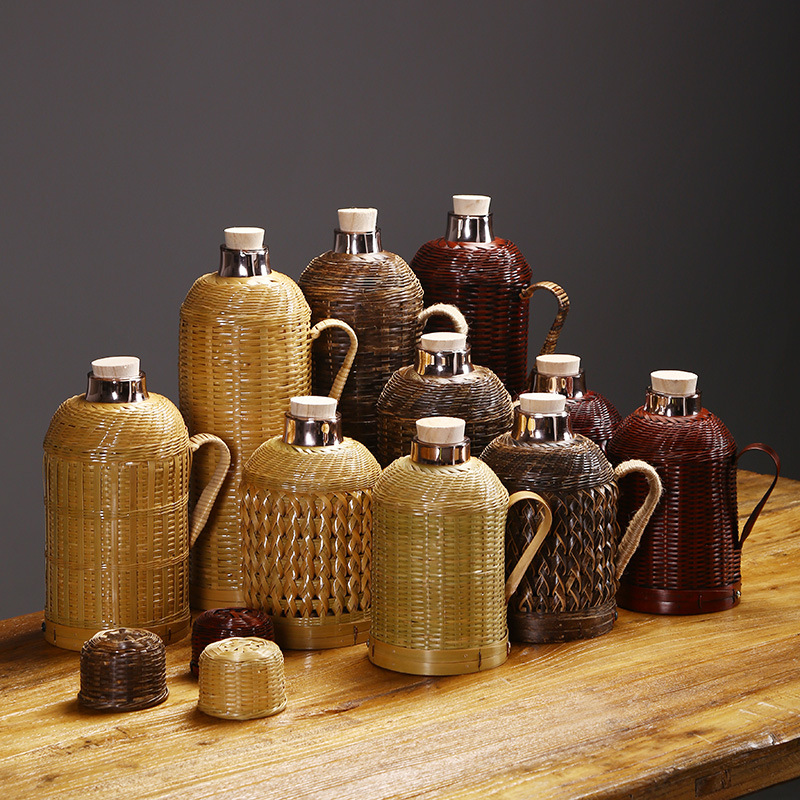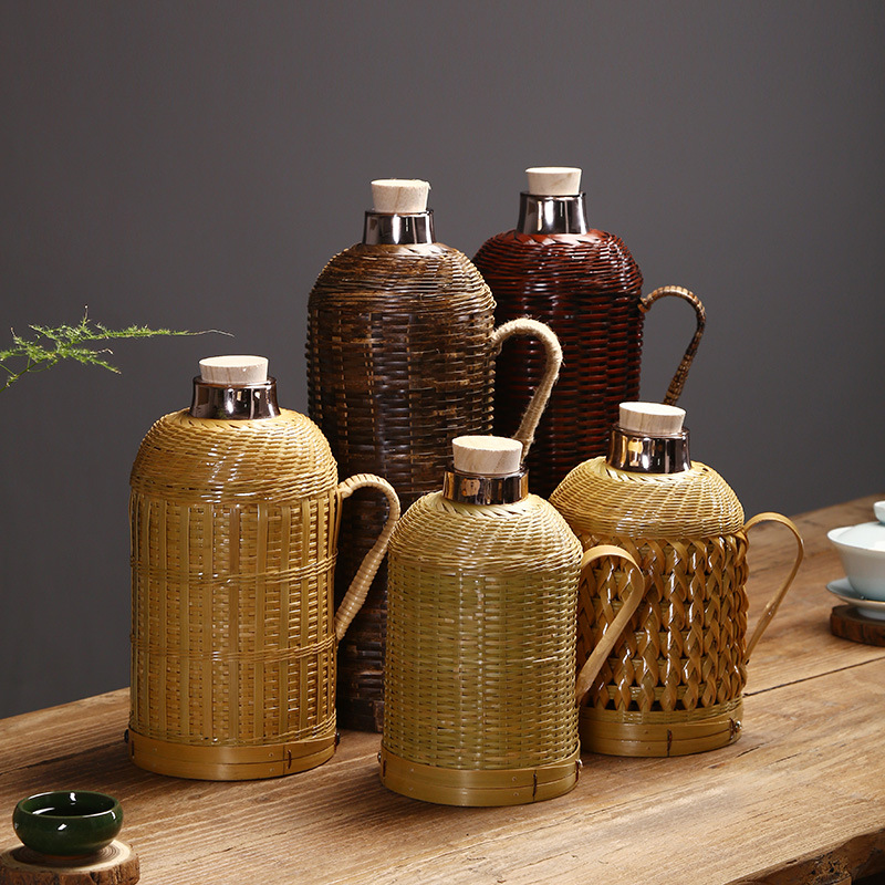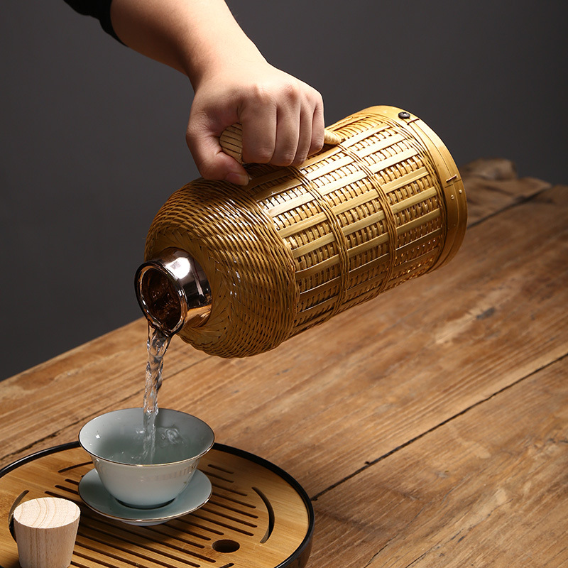 Главная страница > Бамбуковая Бытовая бутылка с горячей водой ручной работы Вакуумный чайник для воды Винтажная бутылка Стеклянный вкладыш Термос для чайной комнаты