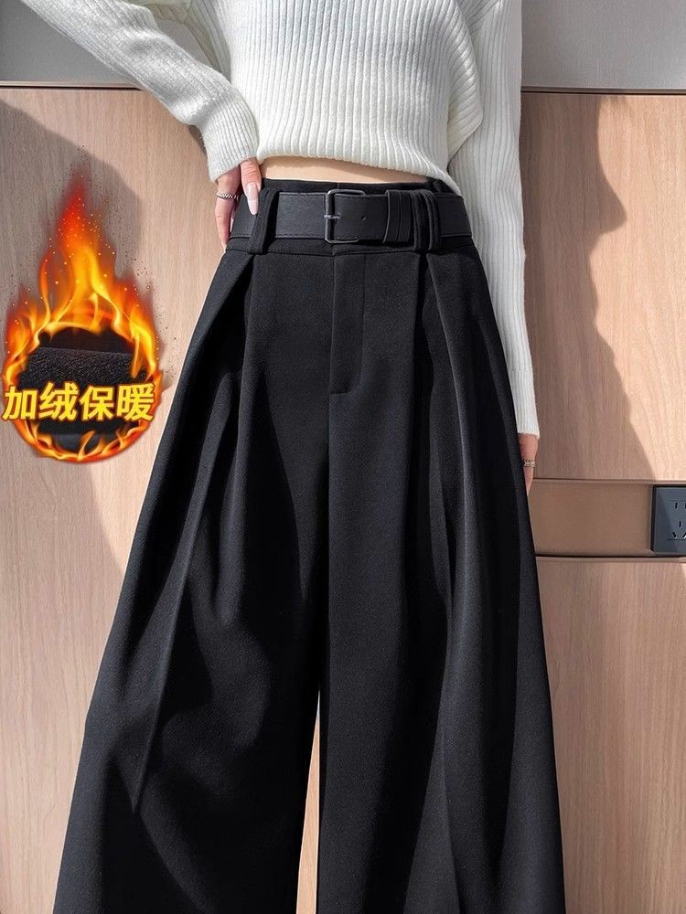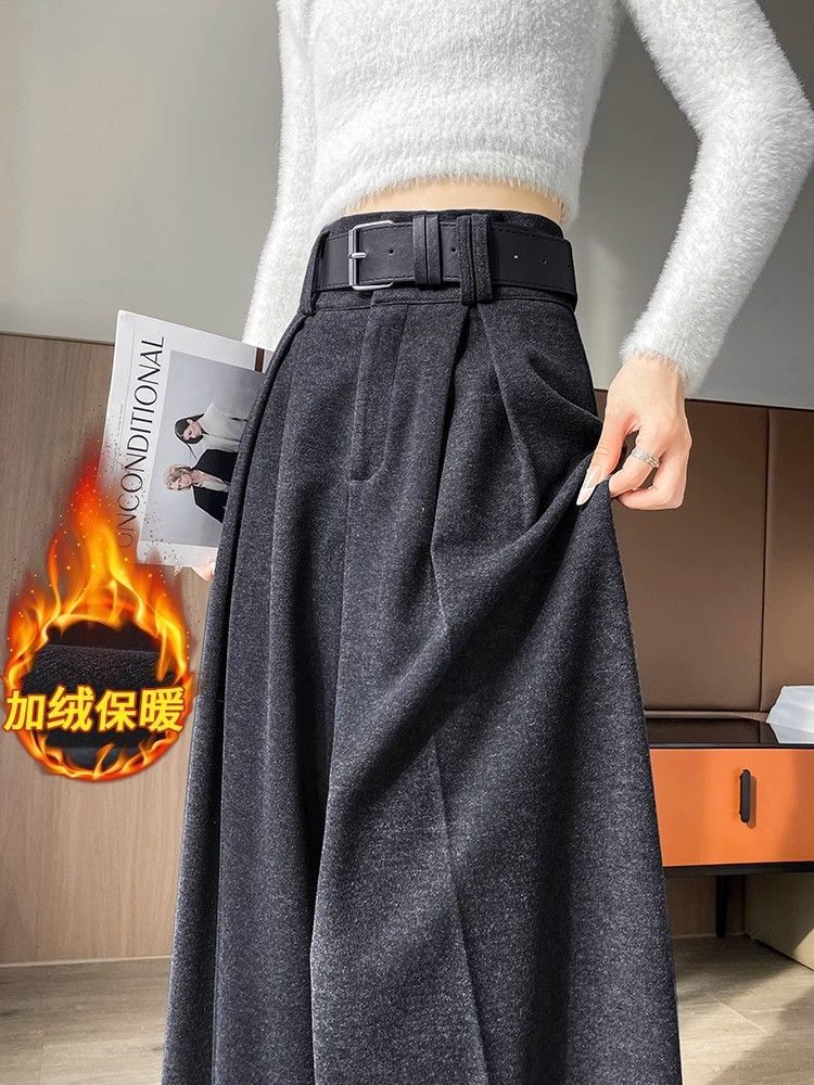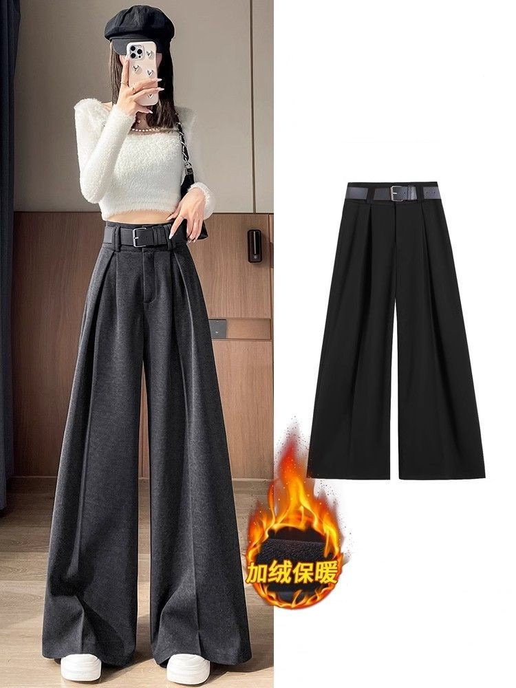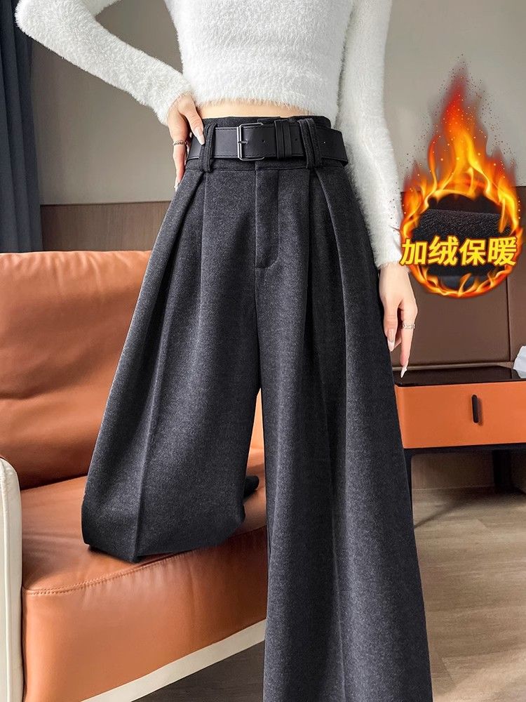 Главная страница > Плюшевые толстые серые шерстяные широкие брюки женские корейские модные осенние и зимние высокие талии тонкие прямые свободные повседневные брюки