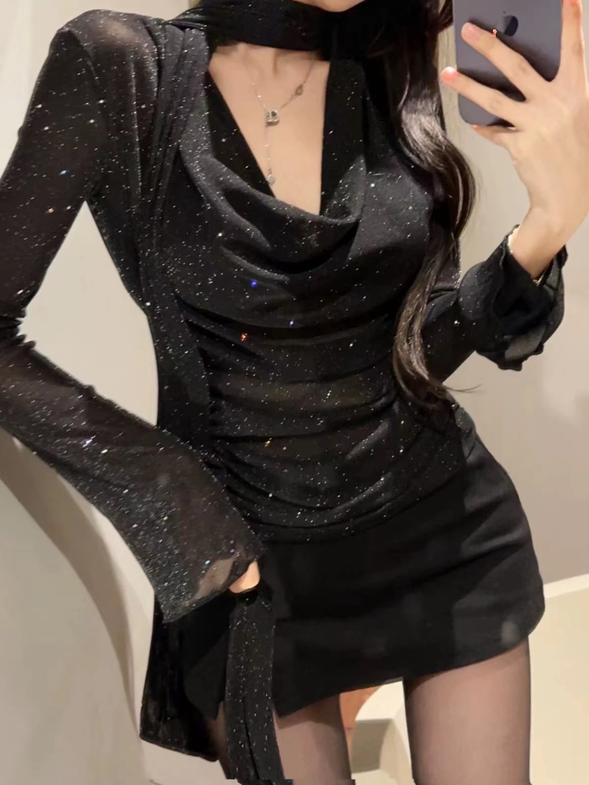 Главная страница > Стильный топ с V-образным вырезом Salt Style, модный французский стиль, элегантная утягивающая футболка для женщин, новинка весна-лето 2025