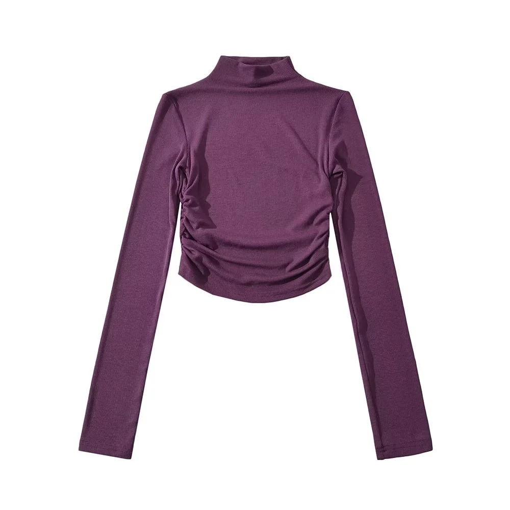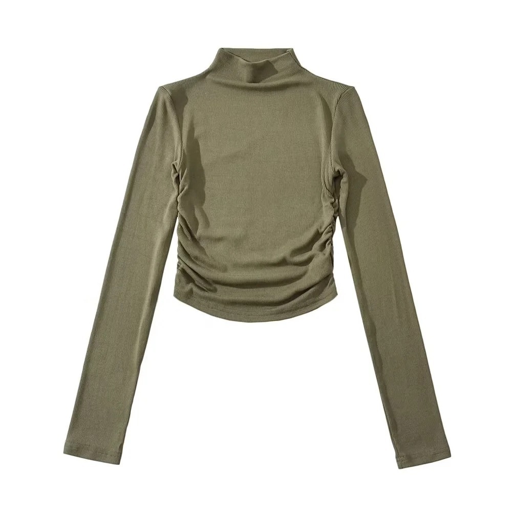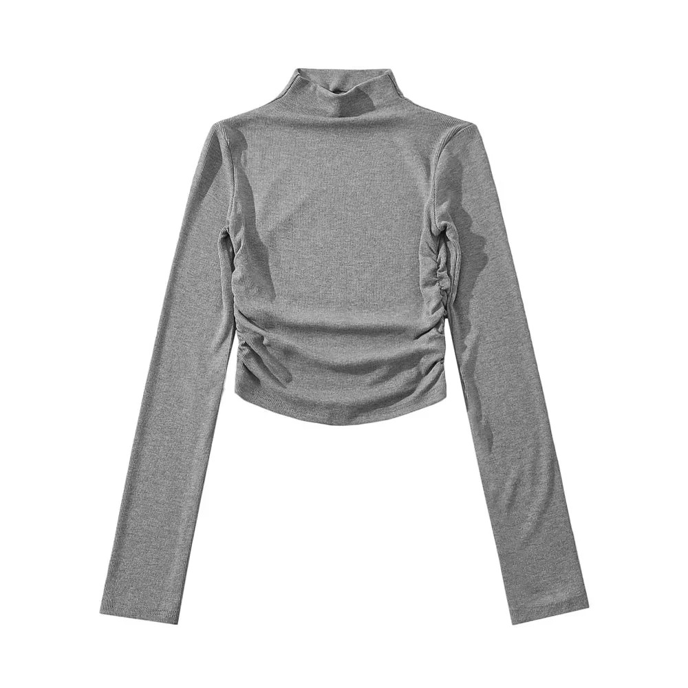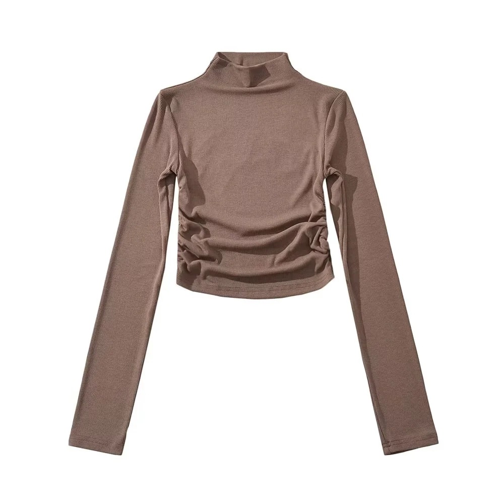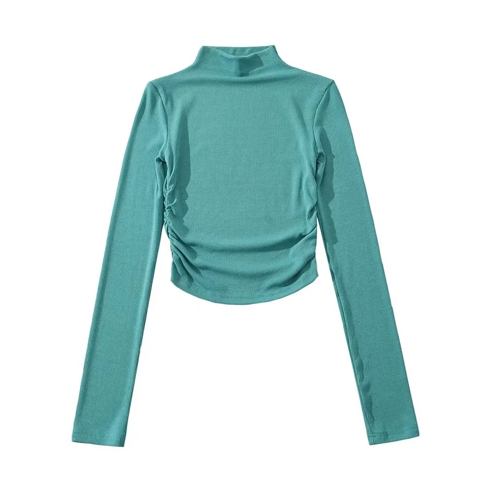 Главная страница > Маленькая однотонная Базовая рубашка с высоким воротом, Женская Новая эластичная облегающая футболка в европейском и американском стиле для девочек, Spice