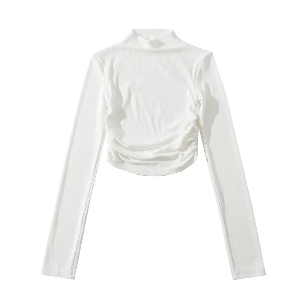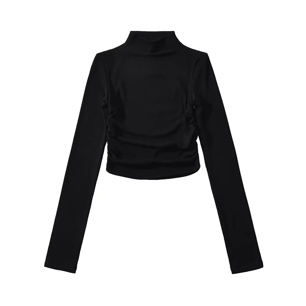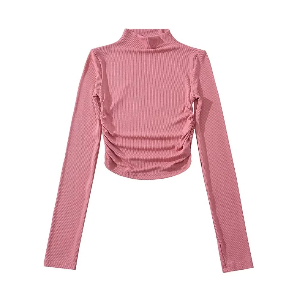 Маленькая однотонная Базовая рубашка с высоким воротом, Женская Новая эластичная облегающая футболка в европейском и американском стиле для девочек, Spice