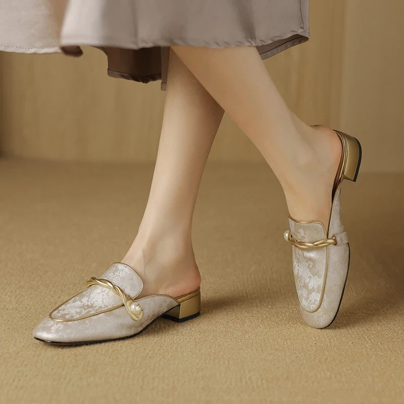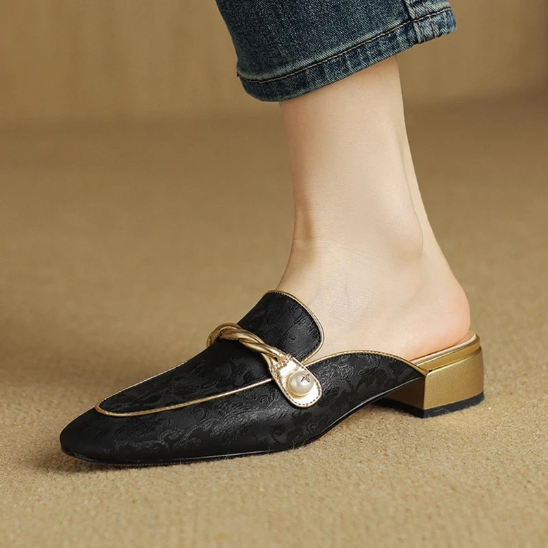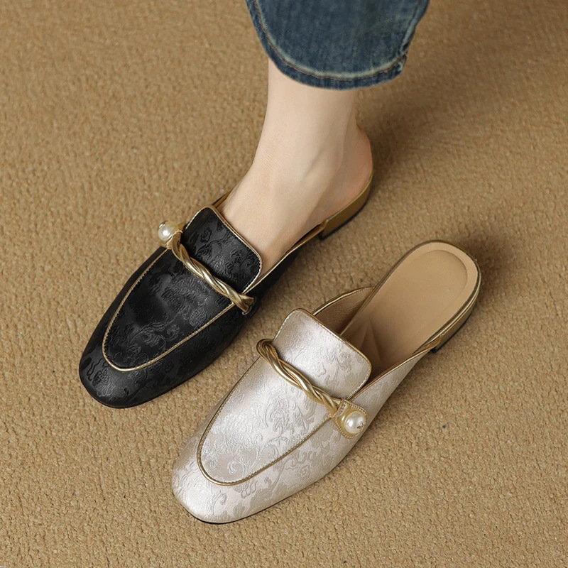 Главная страница > Женские тапочки Baotou, новинка 2025 года, популярный стиль, универсальные модные универсальные полутапочки на толстом каблуке в сказочном стиле для женщин, летняя верхняя одежда