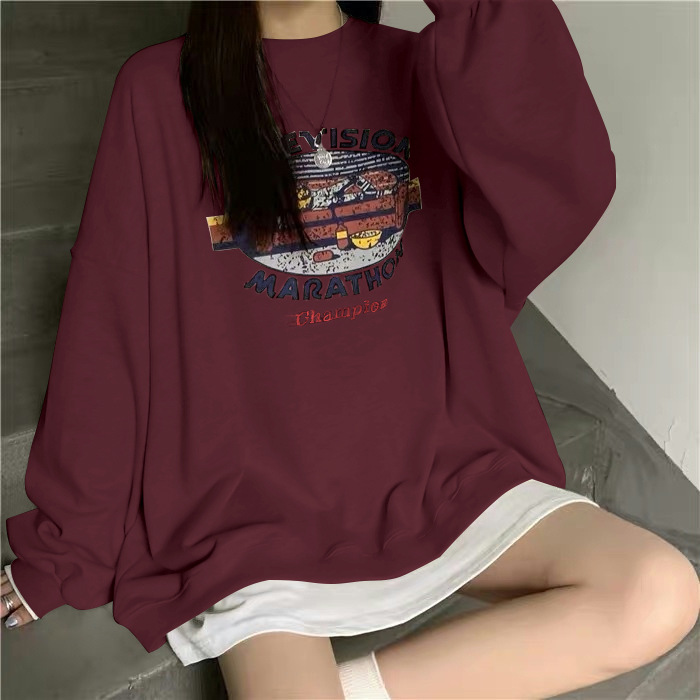 Главная страница > Свитер в американском стиле ретро с круглым вырезом, женская осенняя одежда, Базовая рубашка для студентов, повседневный Свободный Топ, модный тонкий