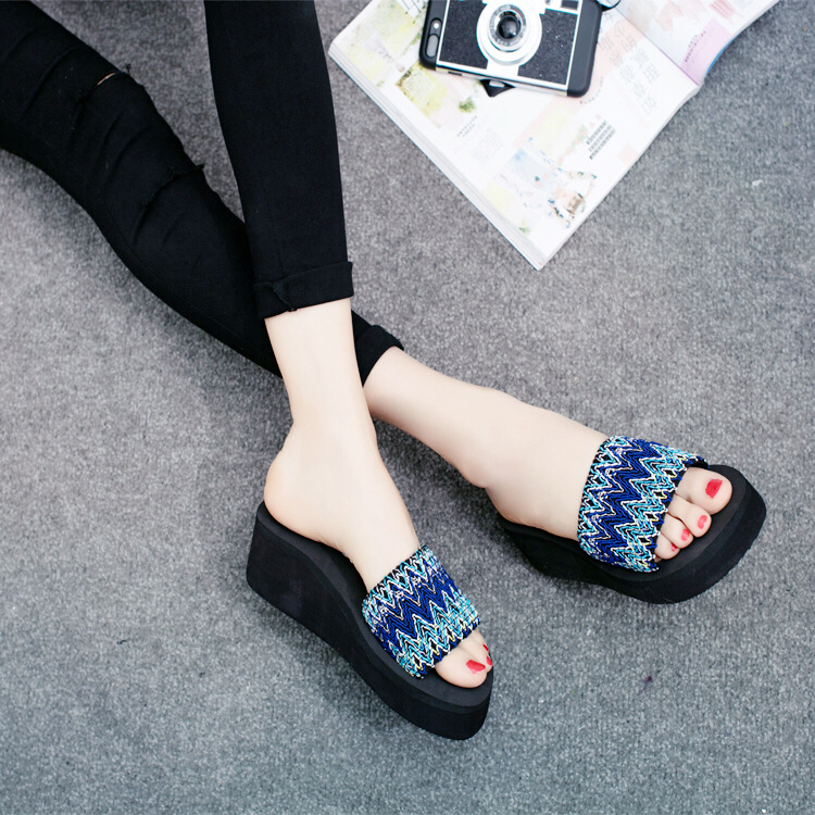 Главная страница > Летняя Новая Универсальная Женская Нескользящая Повседневная Верхняя одежда на плоской подошве в этническом стиле в Корейском стиле, пляжные тапочки на толстой подошве