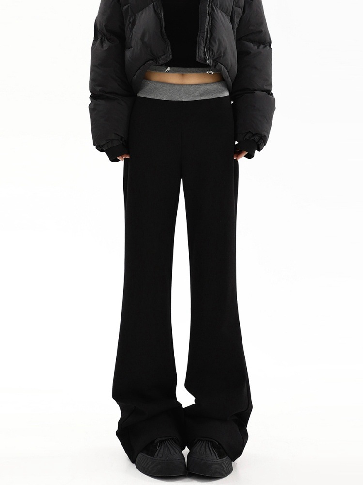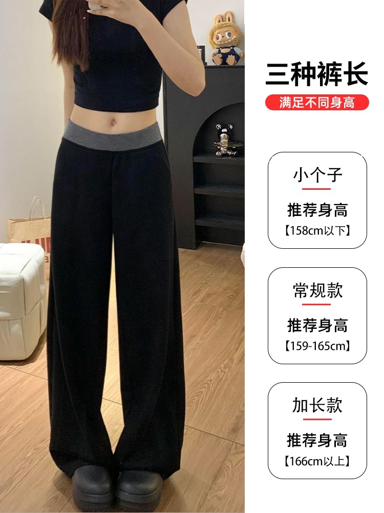 Плюшевые черные сшитые повседневные брюки женские большие размеры осенью и зимой толстые мм свободные тонкие грушевидные спортивные брюки с широкими ногами