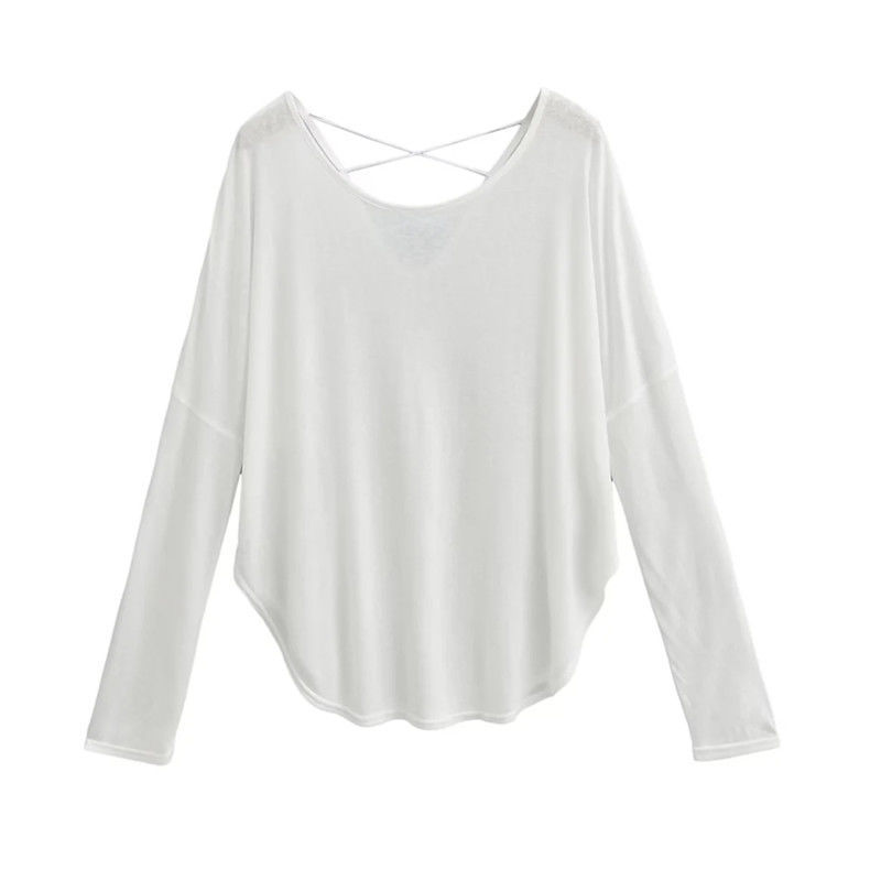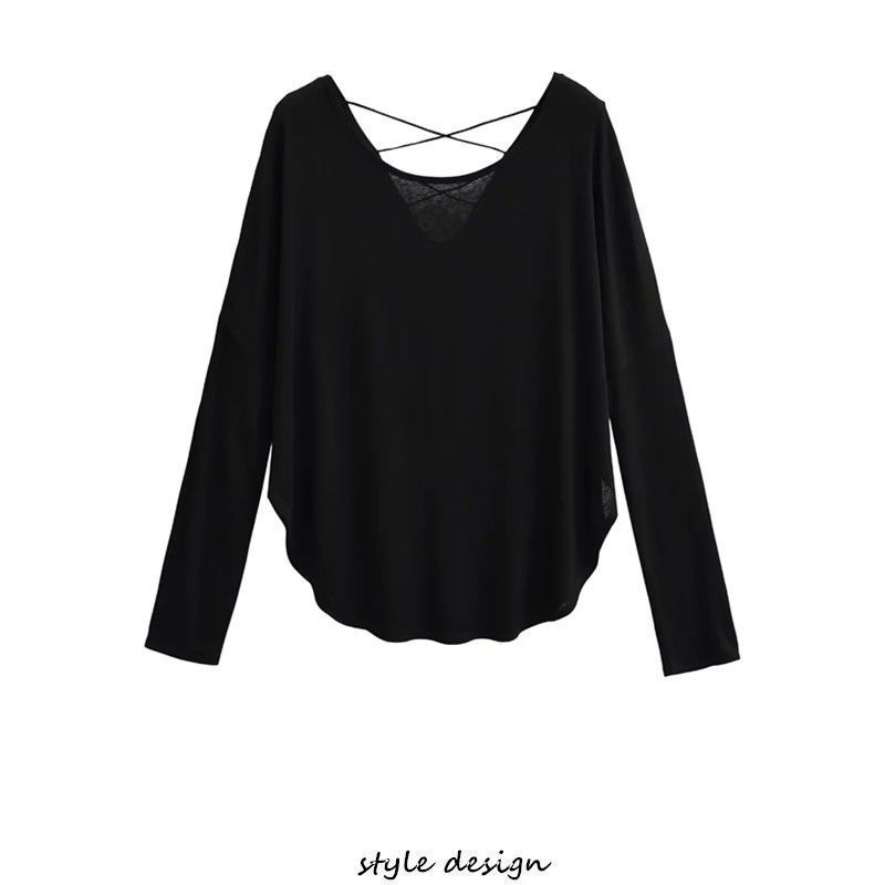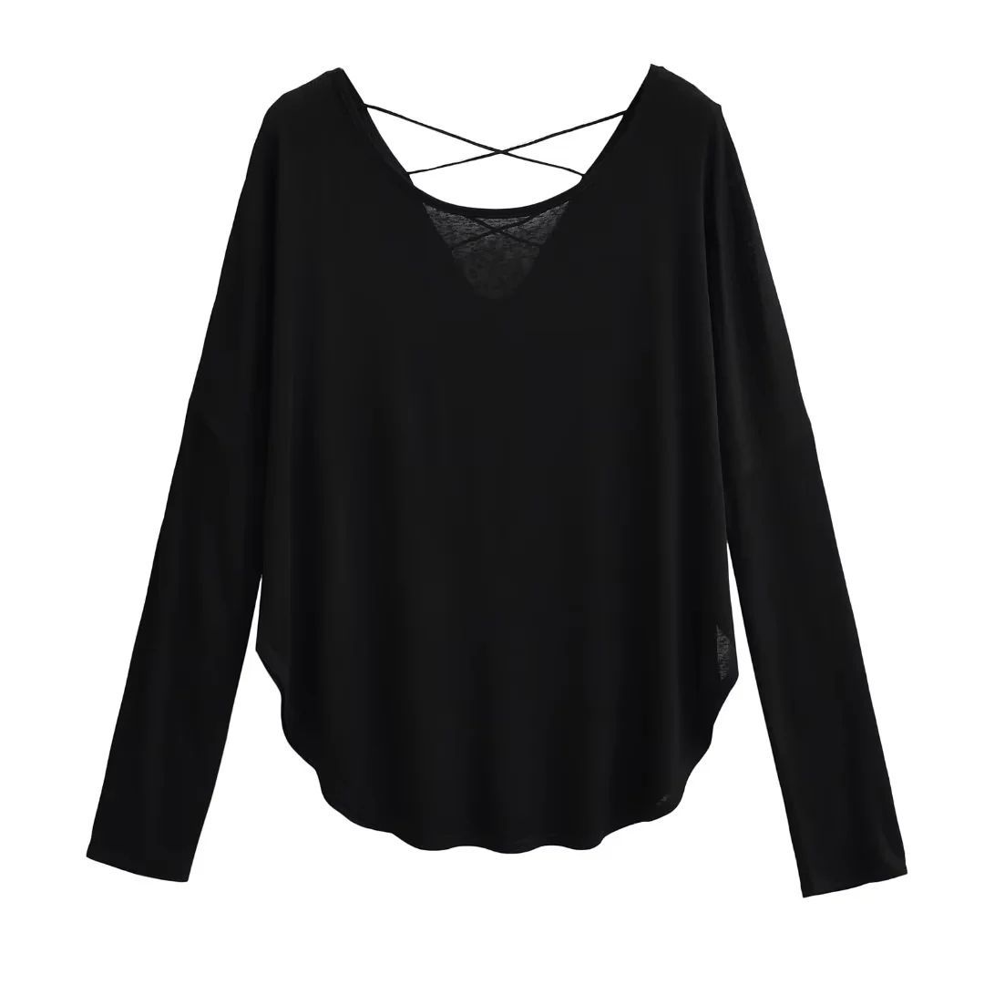 Главная страница > Свободная утягивающая блузка для джазовых танцев, футболка с длинными рукавами и вырезом сзади, солнцезащитная базовая рубашка для женщин, ленивый стиль.