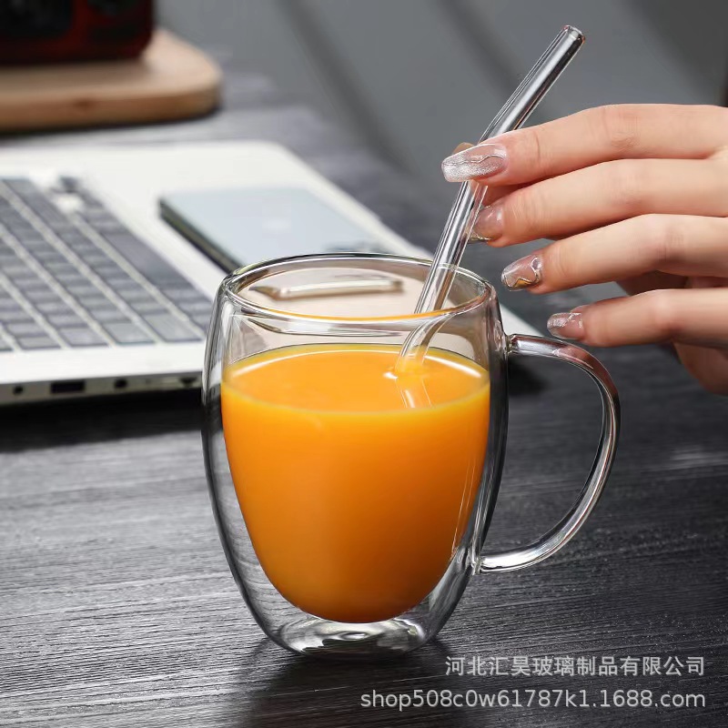 Главная страница > Оптовая продажа с ручкой двухслойная чашка с высоким содержанием боросиликатного стекла молочный чай напиток стеклянная чашка