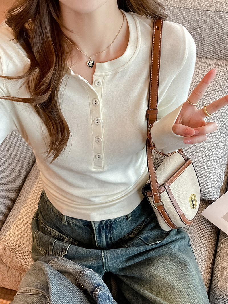 Ранняя осень новый топ с длинным рукавом с круглым вырезом