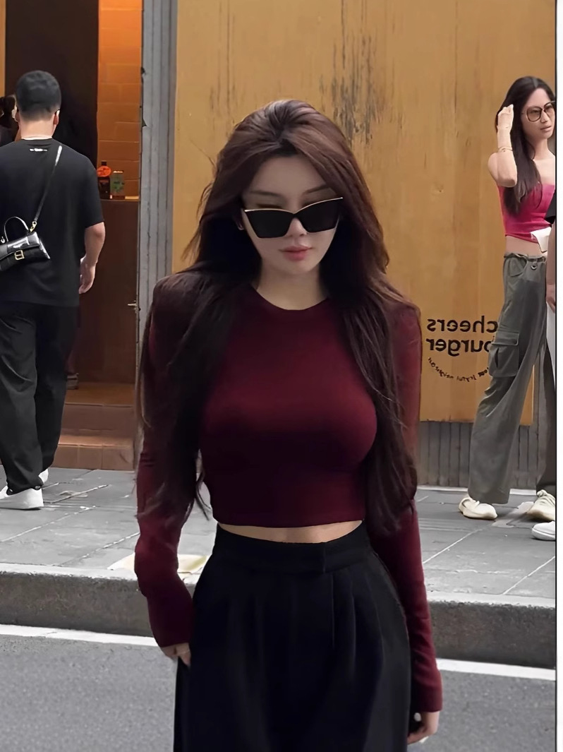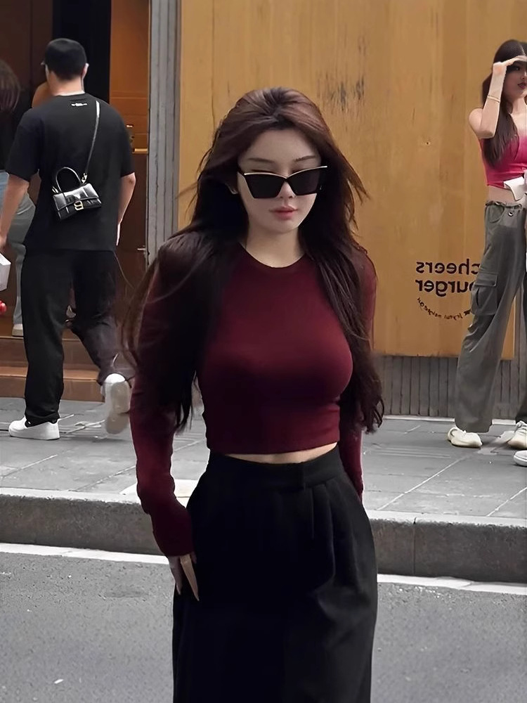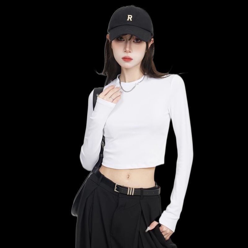 Главная страница > Женская футболка с круглым вырезом и длинными рукавами на весну и осень, рубашка с коротким низом для похудения, топ, уменьшающий возраст, удобный, для похудения.