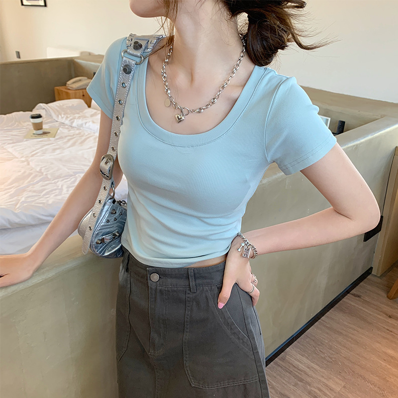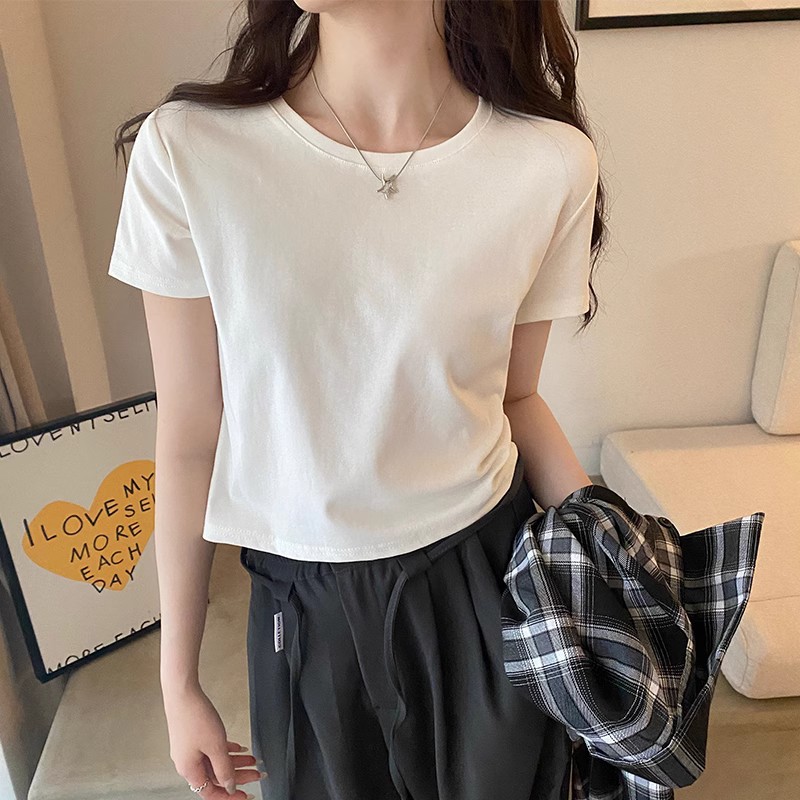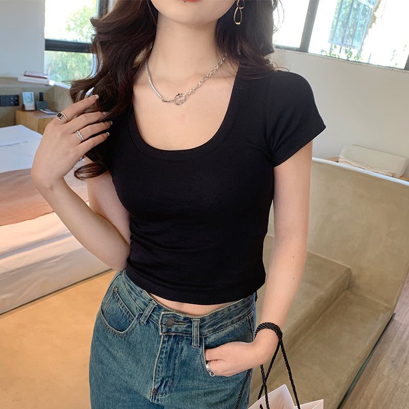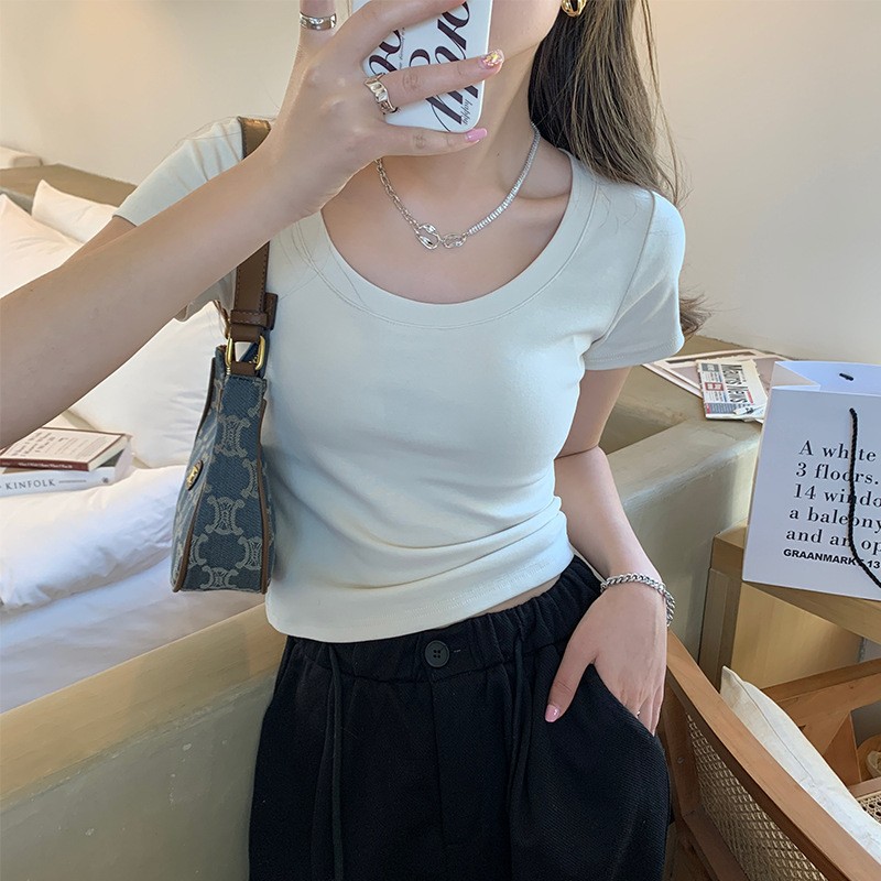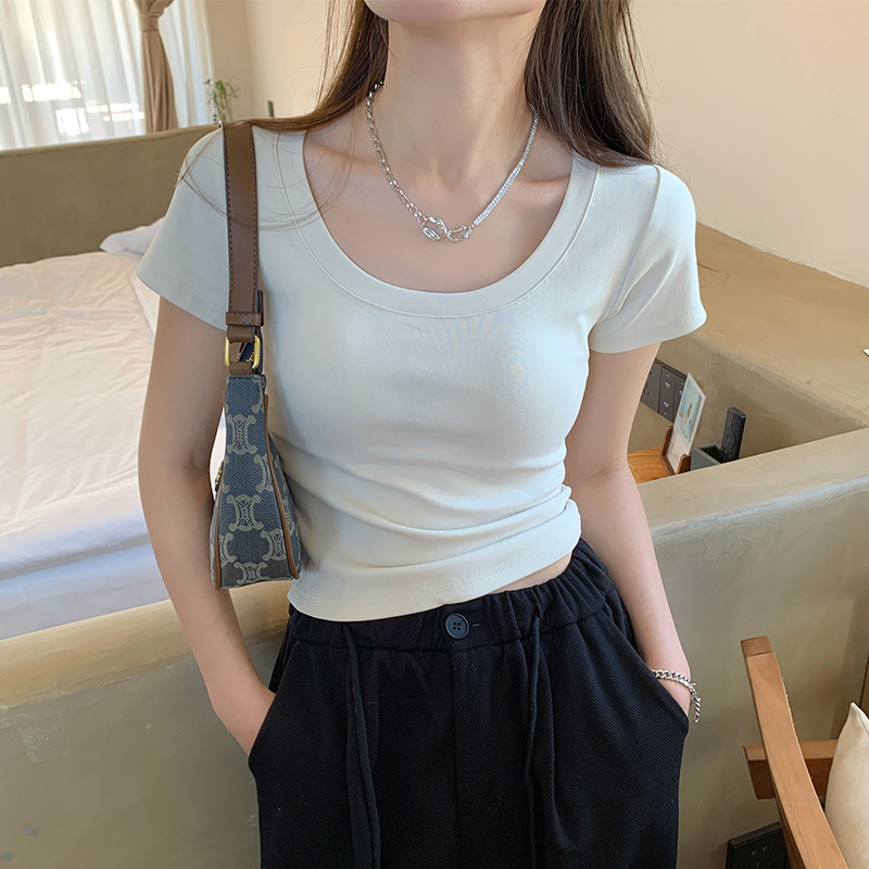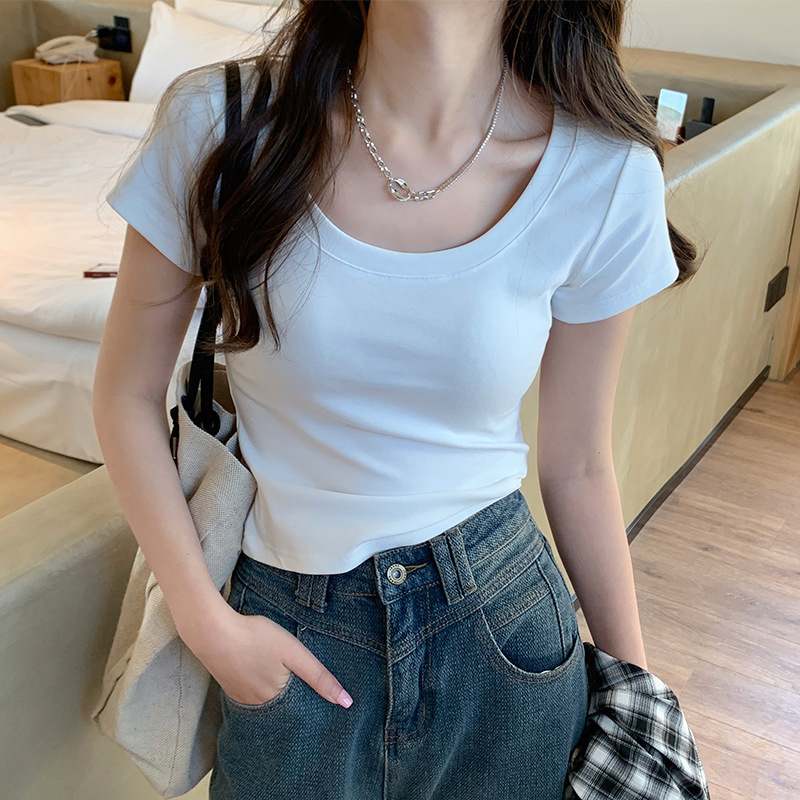 Главная страница > Футболка с U-образным вырезом для женщин с короткими рукавами летом 2025 нового белого хлопка с коротким вырезом
