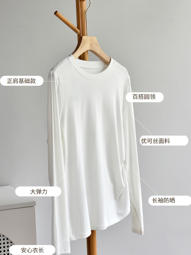 [Тонкая футболка с длинными рукавами] Осень 2025, новая женская футболка с круглым вырезом EcoCos, белая внутренняя футболка с длинными рукавами, базовый слой