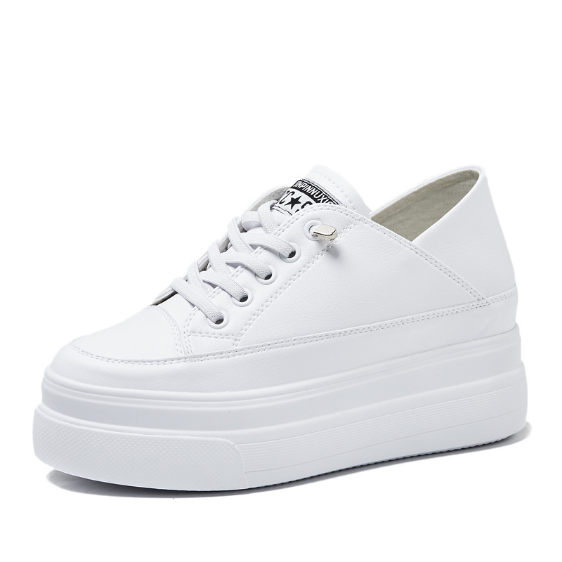 Главная страница > Женские белые кроссовки на толстой подошве, новинка 2025 года, простые, универсальные, с круглым носком, увеличивающие рост, повседневные, для миниатюрных женщин, подходят для всех сезонов