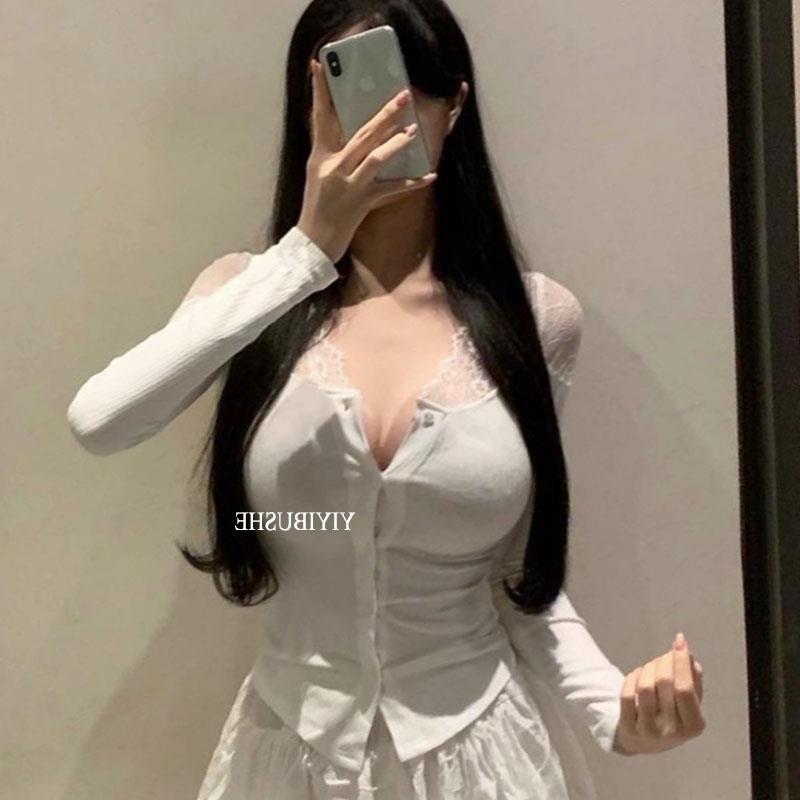 Спот Dongdaemen MV528 сексуальная женственность ~ Кружевная сшитая тонкая кардиган футболка ik