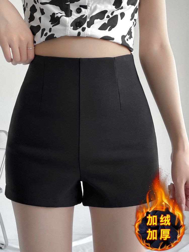 Черные женские шорты, новинка осени и зимы 2024 года, миниатюрные узкие брюки трапециевидной формы с высокой талией, шорты для верхней одежды с флисовыми ботинками.