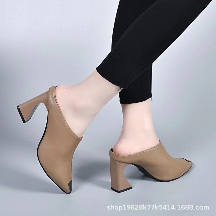 Главная страница > Baotou полутапочки женская верхняя одежда мода 2024 летний новый стиль с острым носком высококачественная мягкая кожа элегантная универсальная женская обувь на высоком каблуке