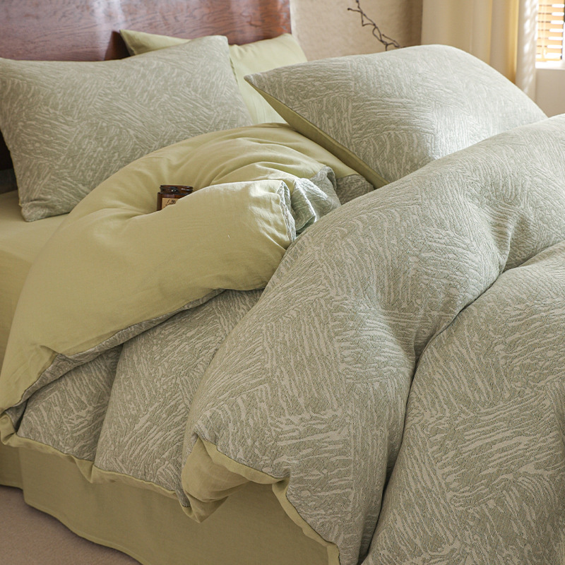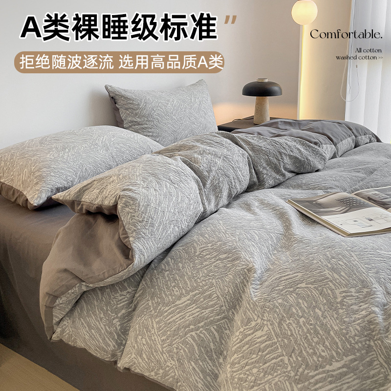 Главная страница > 全棉提花双层纱床上四件套2025新款纯棉床品被套床单三件套床笠款