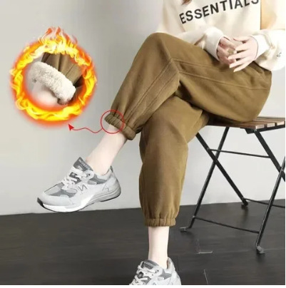 Главная страница > Женские утепленные спортивные штаны на флисе, новая модель осень-зима 2025, свободный крой, стройнящие, повседневные хлопковые брюки, женские спортивные штаны из овечьего флиса.