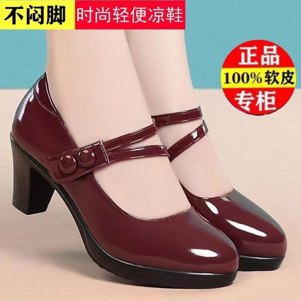 Главная страница > Женские туфли-балетки из натуральной кожи, новинка весны-осени 2024, на высоком каблуке, с круглым носком, водонепроницаемая платформа, массивный каблук, подходят для сочетания с чонсамом, модные для мам.