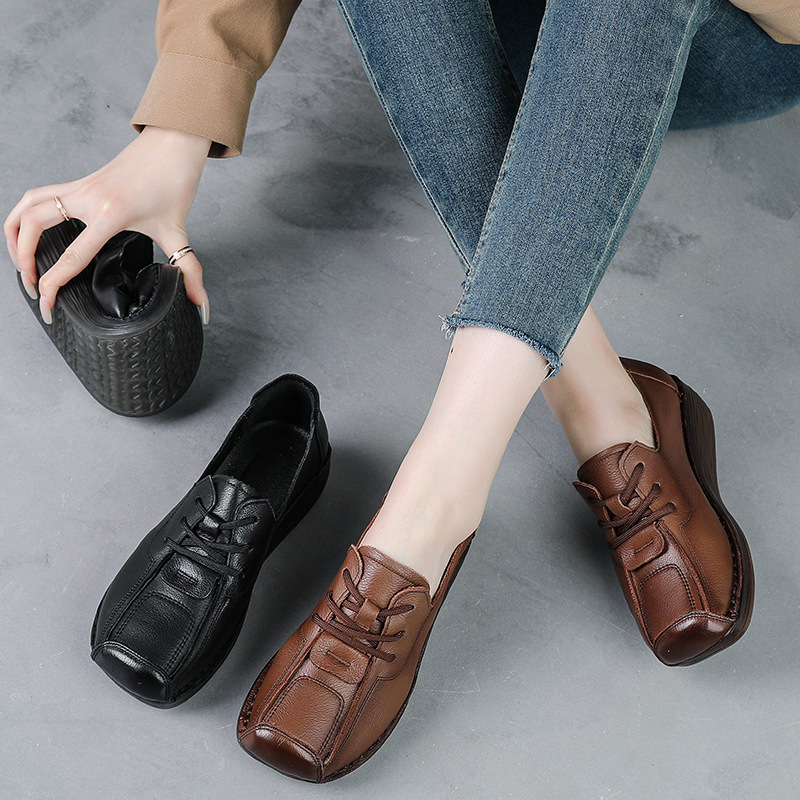 Главная страница > Кожаные кексы с толстым подошвенным склоном и мягким подошвенным мамой туфли весенние и осенние кожаные туфли женские говяжьи сухожилия ретро одиночные туфли