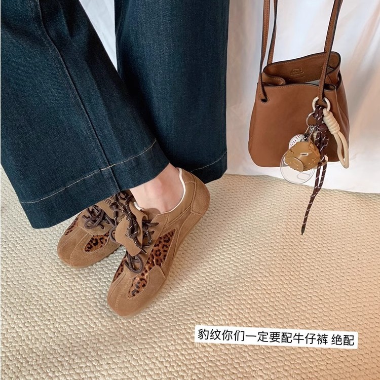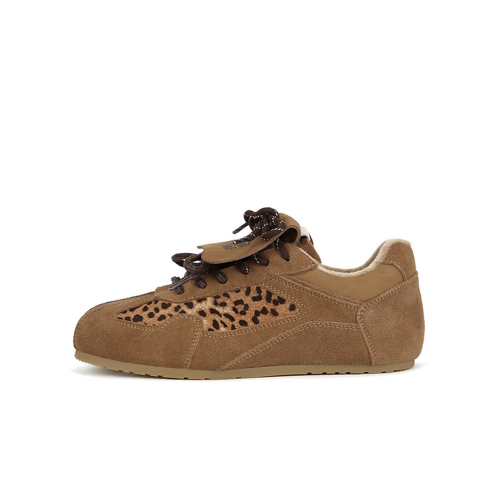 【sheii trendy】Женские кроссовки в стиле ретро с леопардовым принтом и отделкой из конского волоса, повседневные спортивные слипоны для тренировок