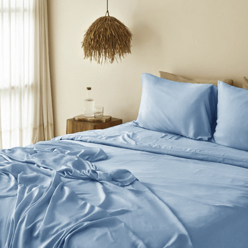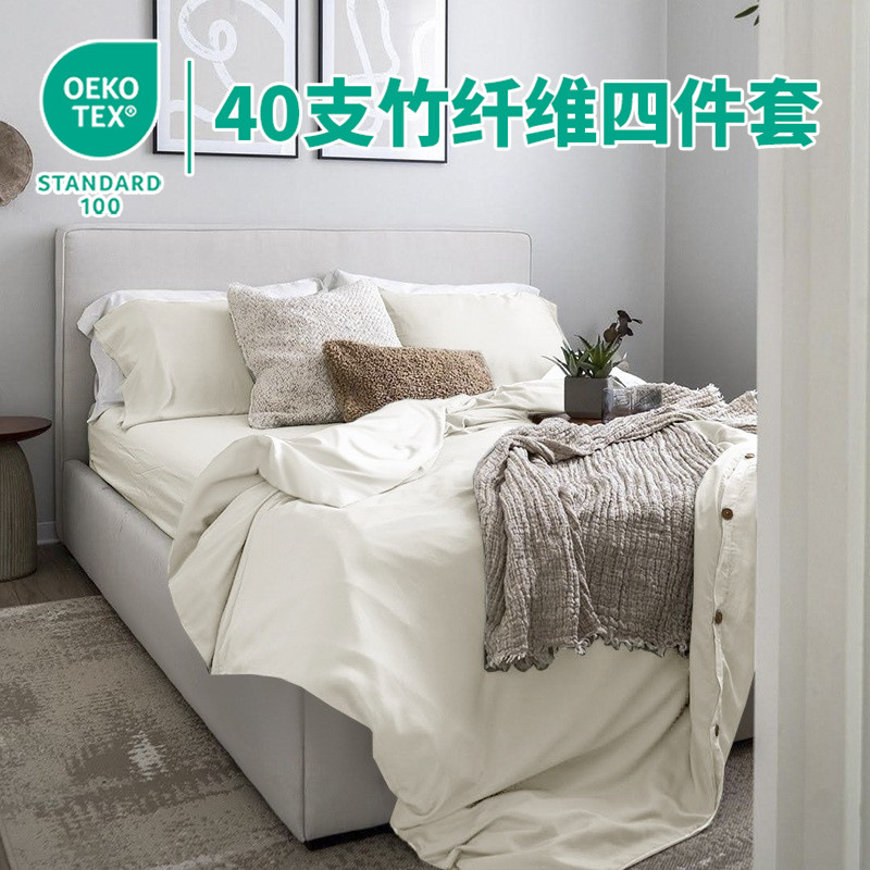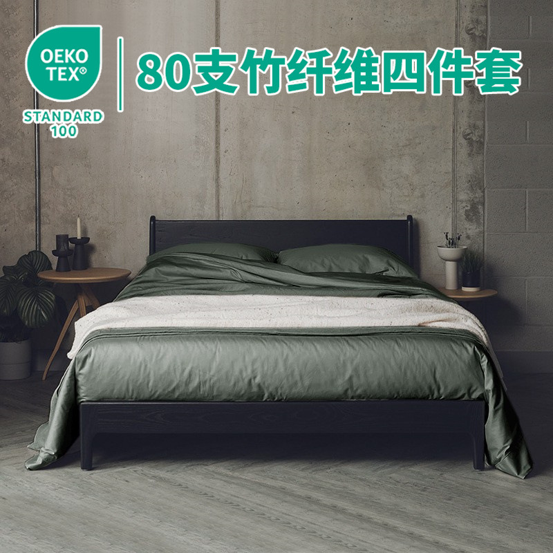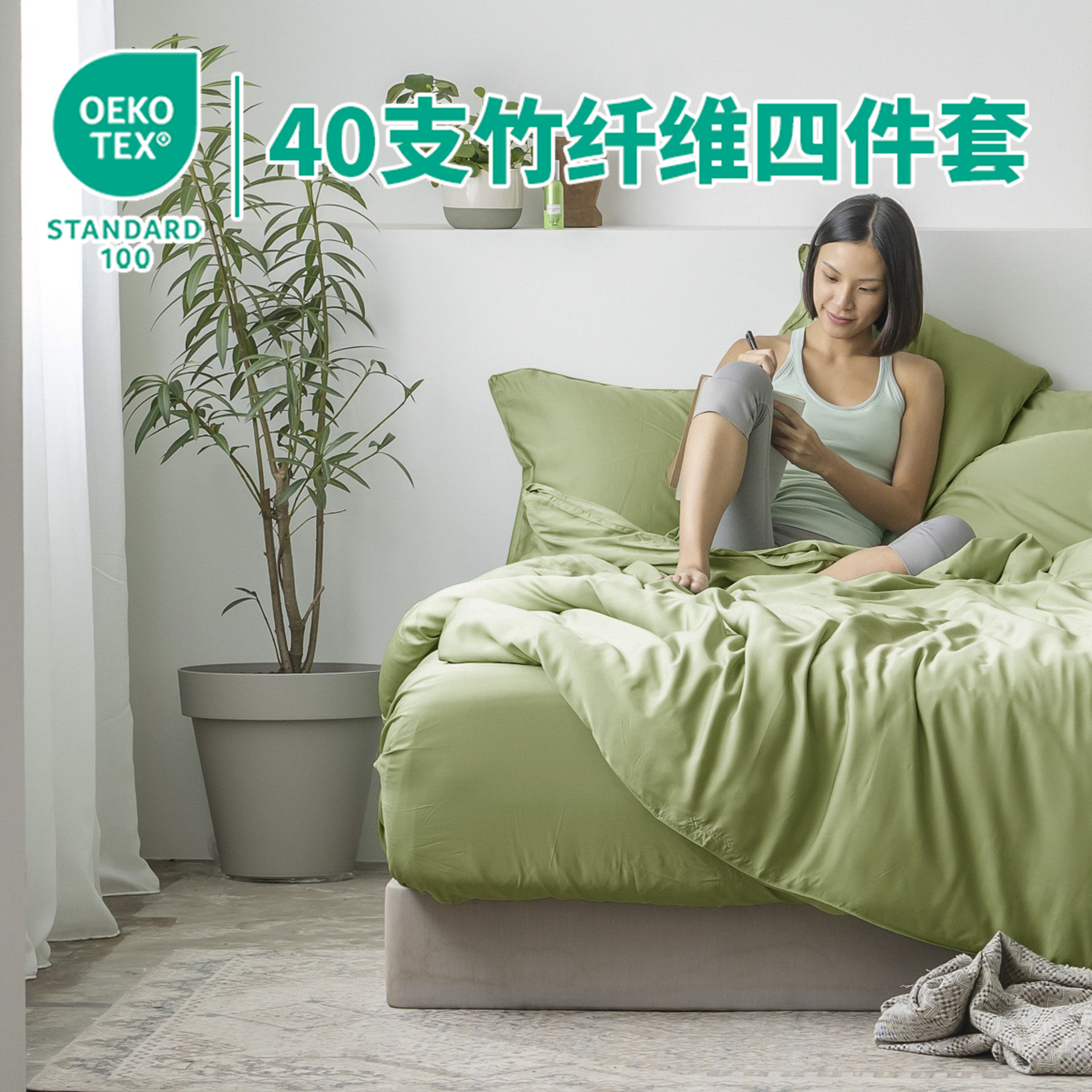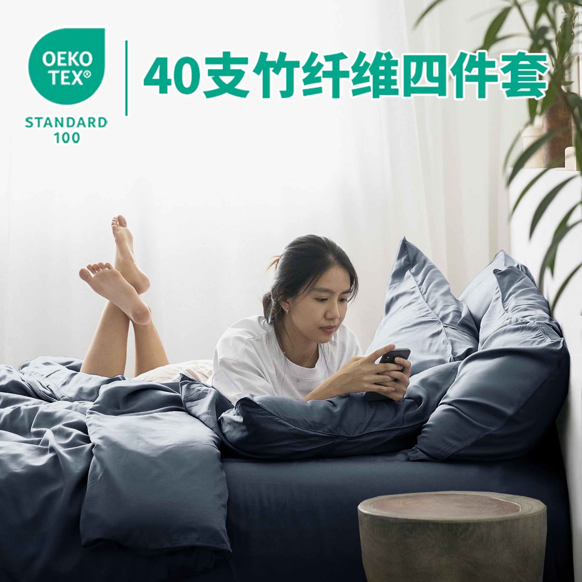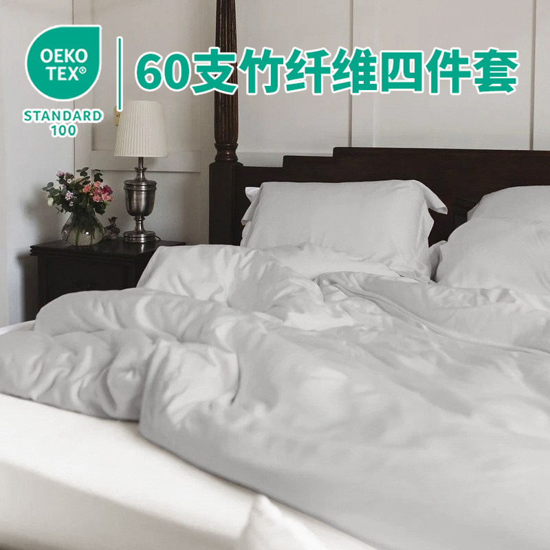 Главная страница > Комплект постельного белья из бамбукового волокна, четыре предмета, экспорт на Amazon, легкий люкс, однотонный, летний, сатин, ткань 80S, сатиновое переплетение