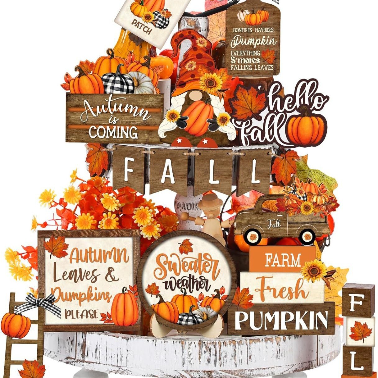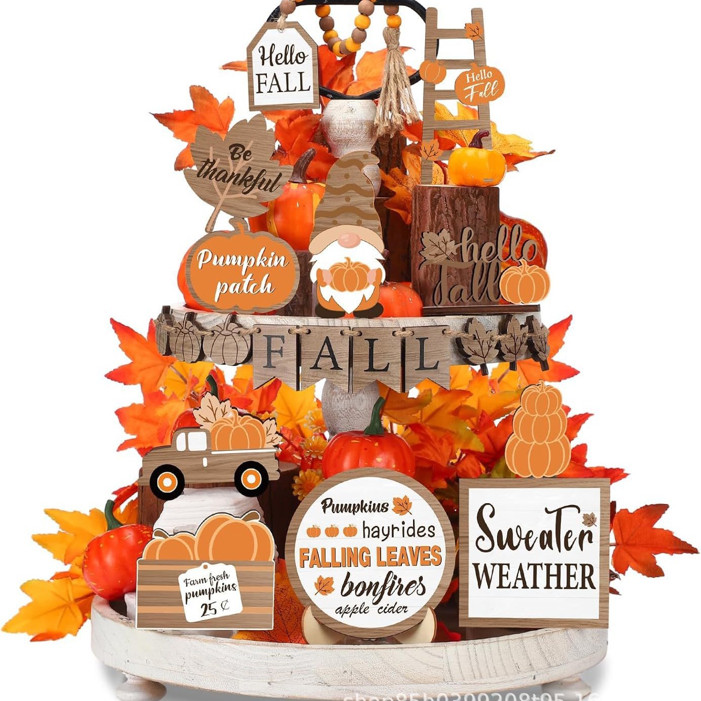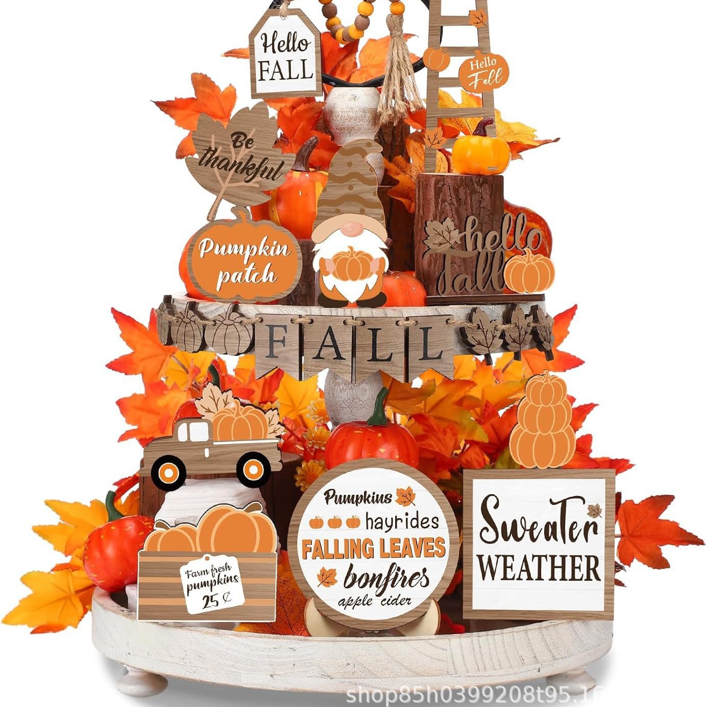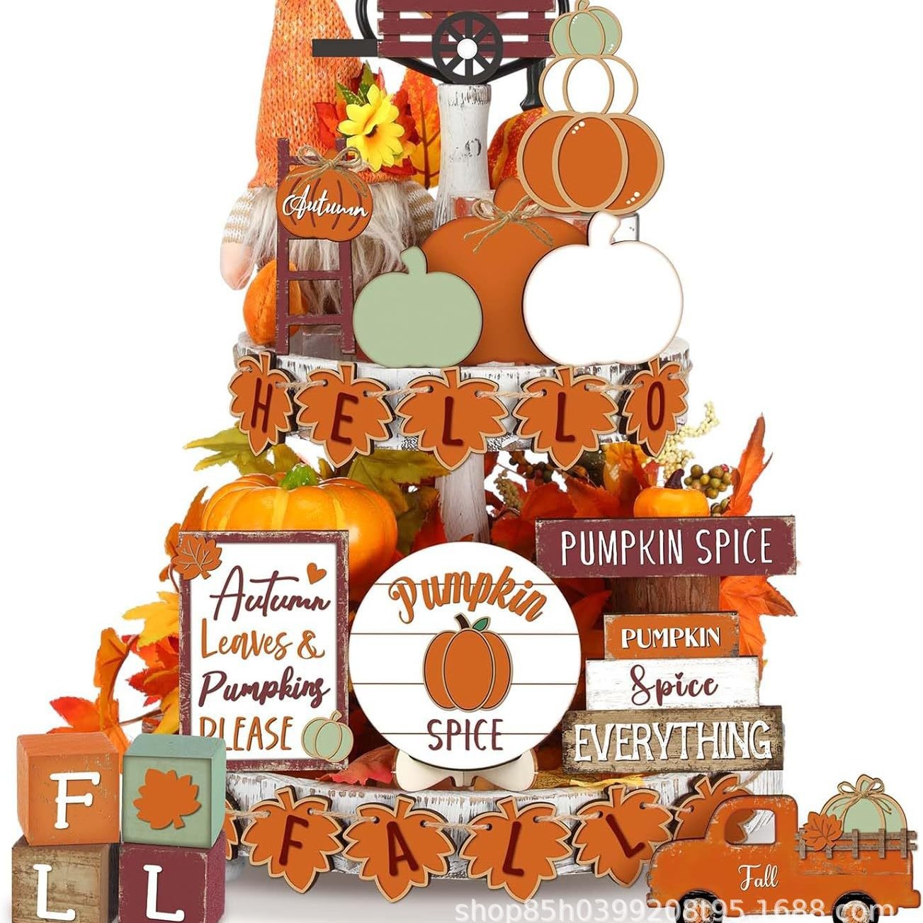 Главная страница > Набор декоративных подносов для осеннего Дня Благодарения в стиле кантри с тыквой, гномом и грузовиком