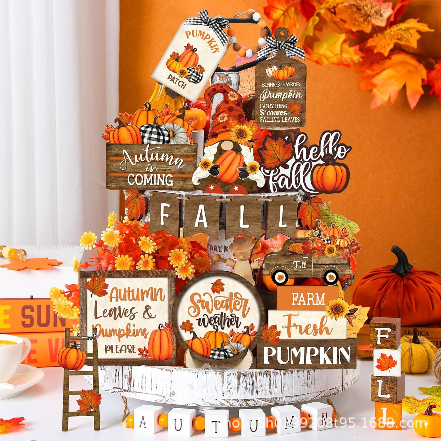 Набор декоративных подносов для осеннего Дня Благодарения в стиле кантри с тыквой, гномом и грузовиком