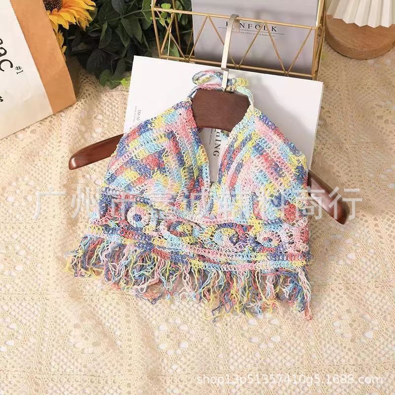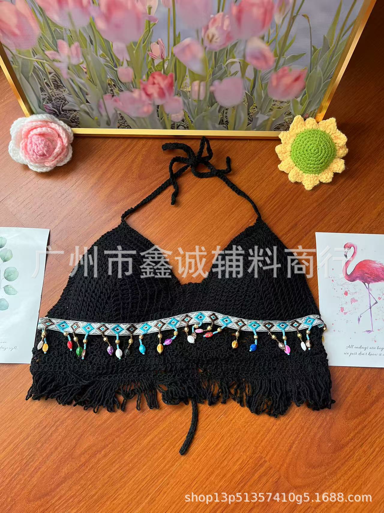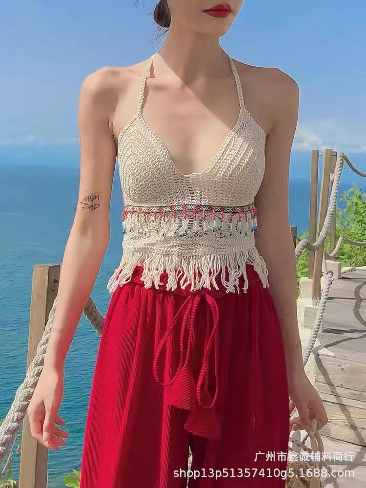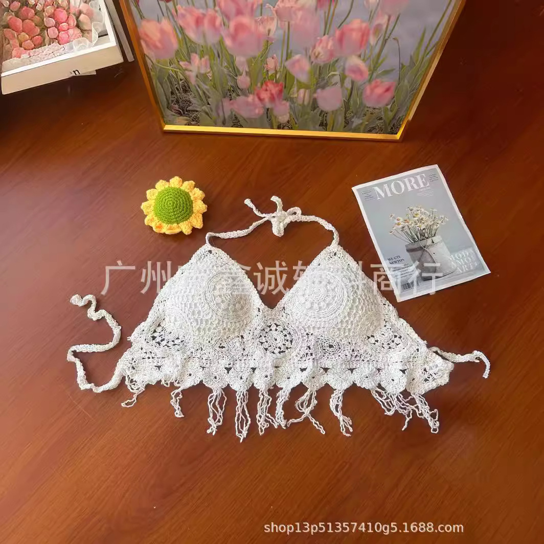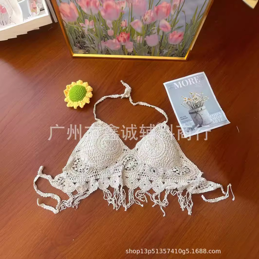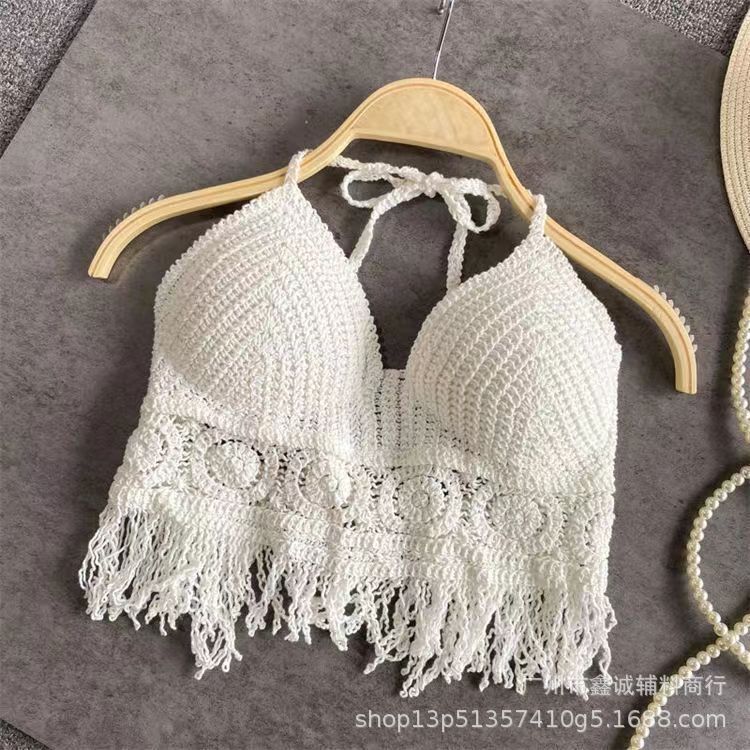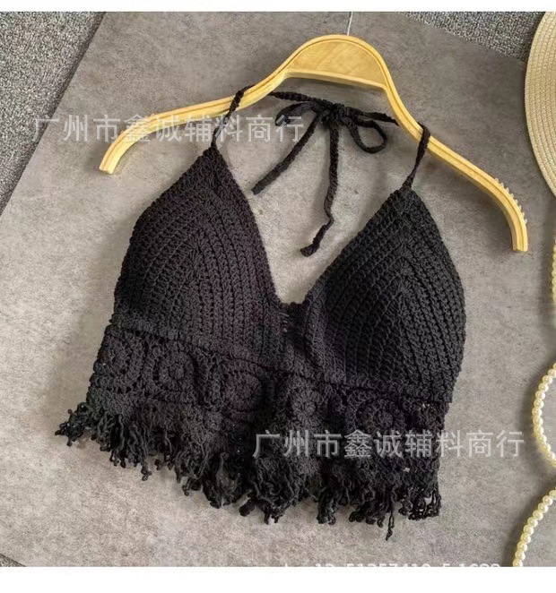 Главная страница > Осенний дизайн Sense Niche Висячий шейный кружевной жилет с кисточками, Женский Новый стильный модный сексуальный короткий топ