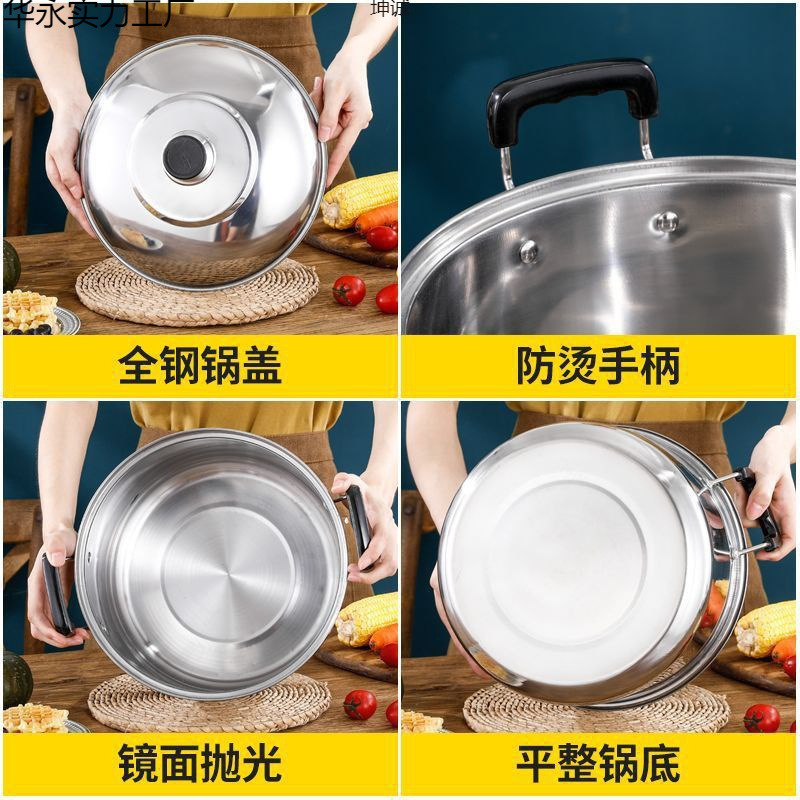 Главная страница > Утолщенная кастрюля для супа из нержавеющей стали, варочная панель для лапши с крышкой, бытовая кастрюля большой емкости для супа, совместимая с индукционными плитами и газовыми плитами.