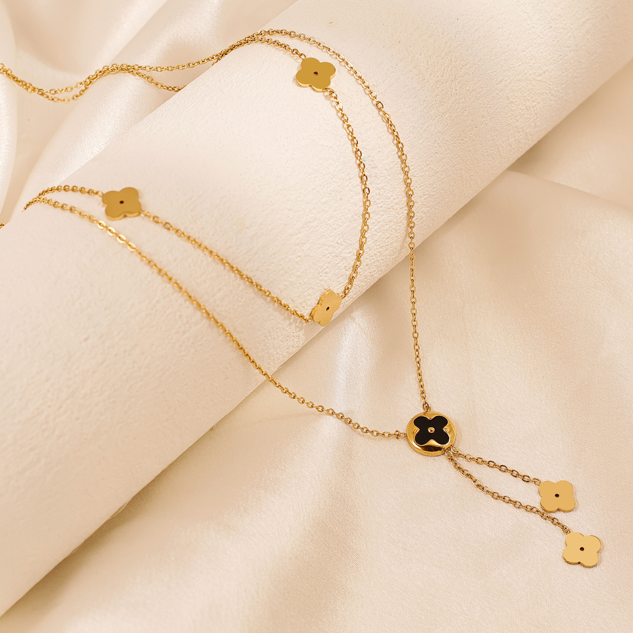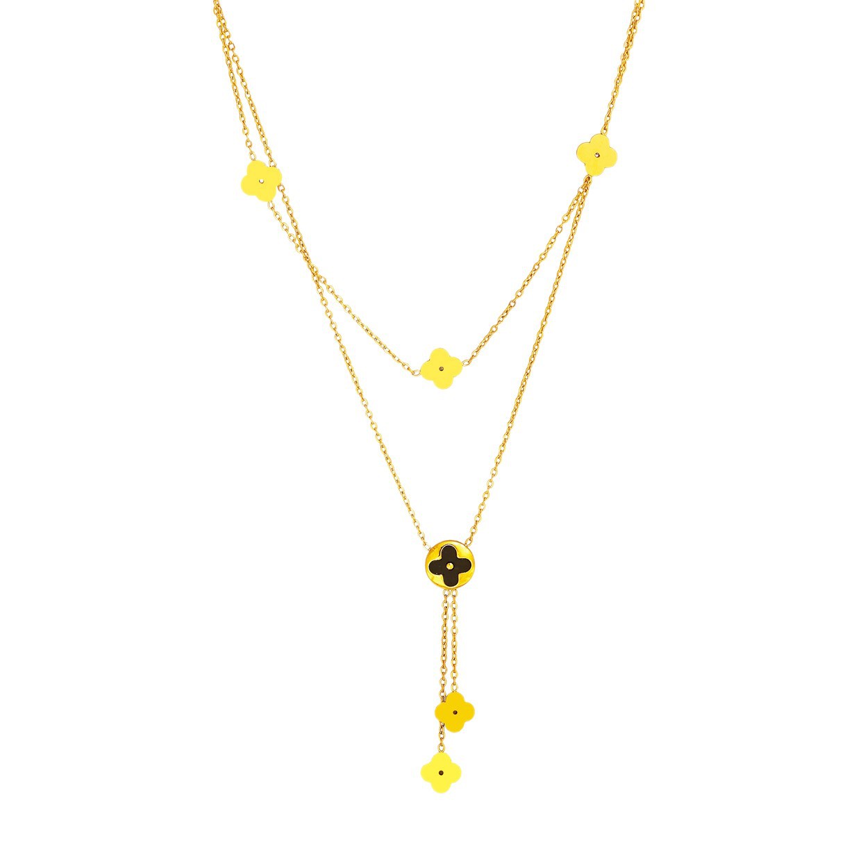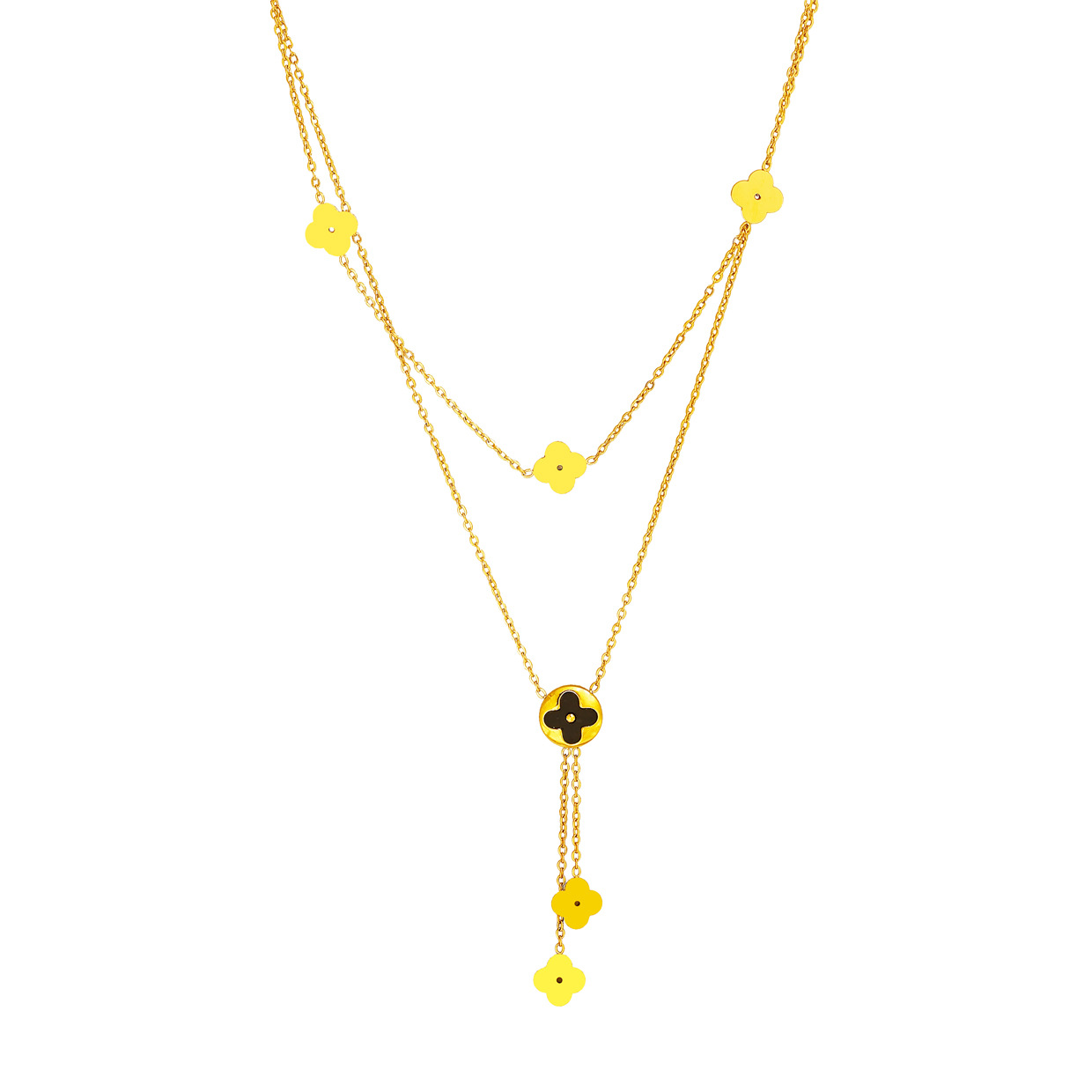 Главная страница > Новое двухслойное ожерелье в форме цветка с глянцевыми бусинами, простая цепочка на ключицы с эффектом высокого класса, элегантное покрытие из титановой стали с 18-каратным золотом.