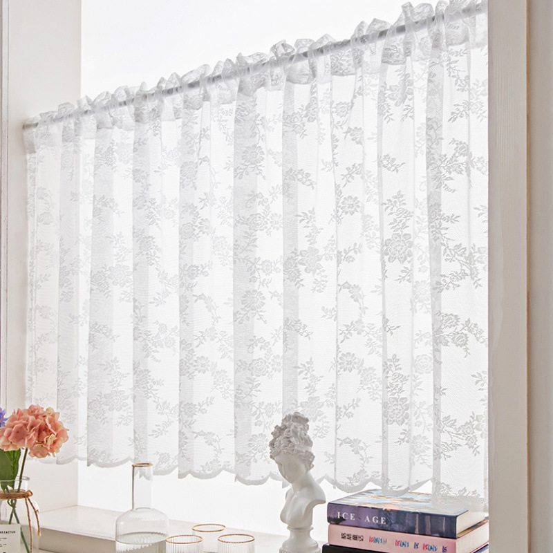 Главная страница > Белые кружевные шторы, прозрачные шторы, светопропускающие полупарусины в пасторальном стиле, короткие шторы, дверные шторы, перегородочные шторы, французский стиль, установка без сверления.