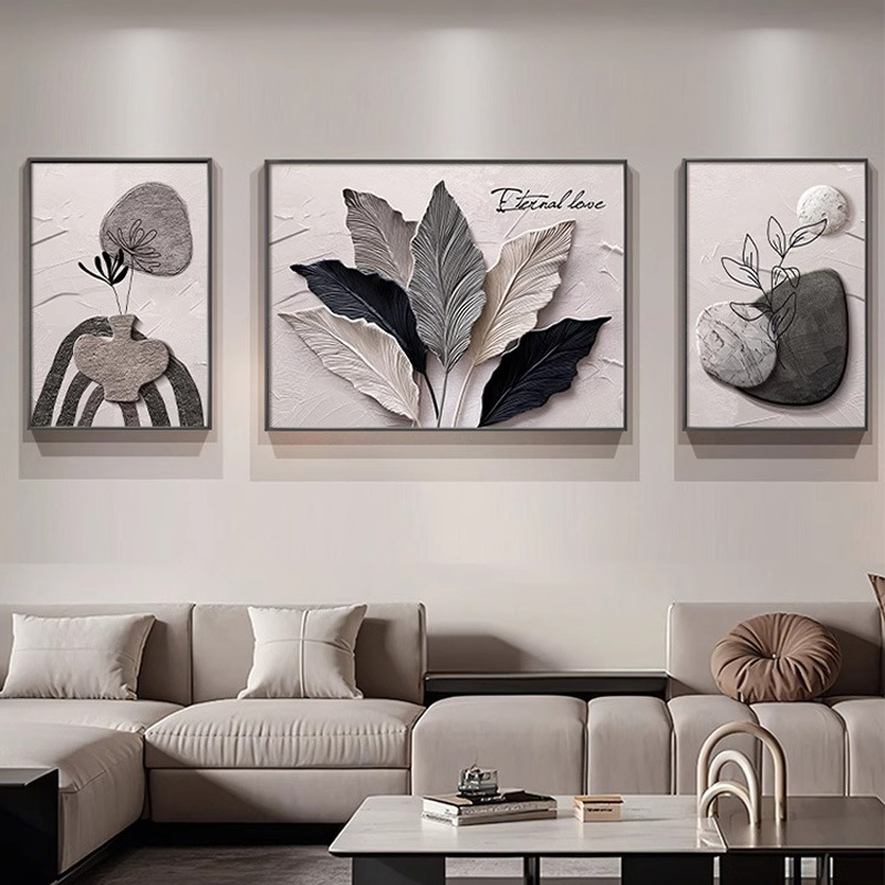 Главная страница > Крупномасштабное украшение для дома и бизнеса, большая белая настенная живопись, великолепная абстрактная настенная роспись на фоне дивана, высококачественная подвесная картина-триптих.