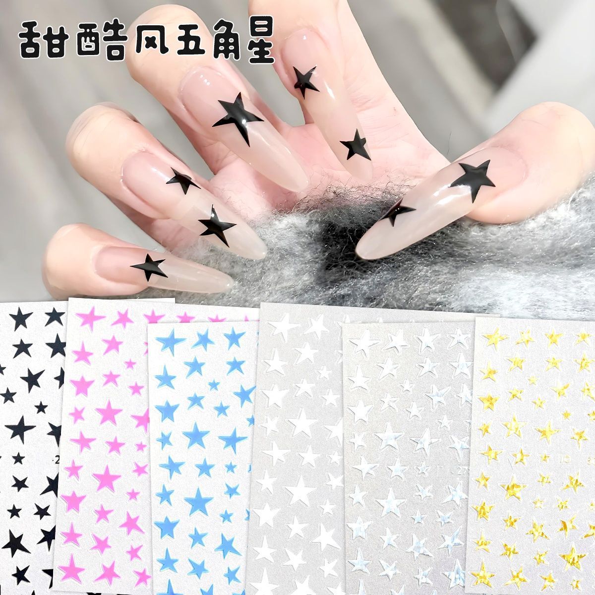 Наклейки для ногтей с макаронами, сердечками и звездами, объемные, в японском стиле, милые, для девочек, с маленькими узорами