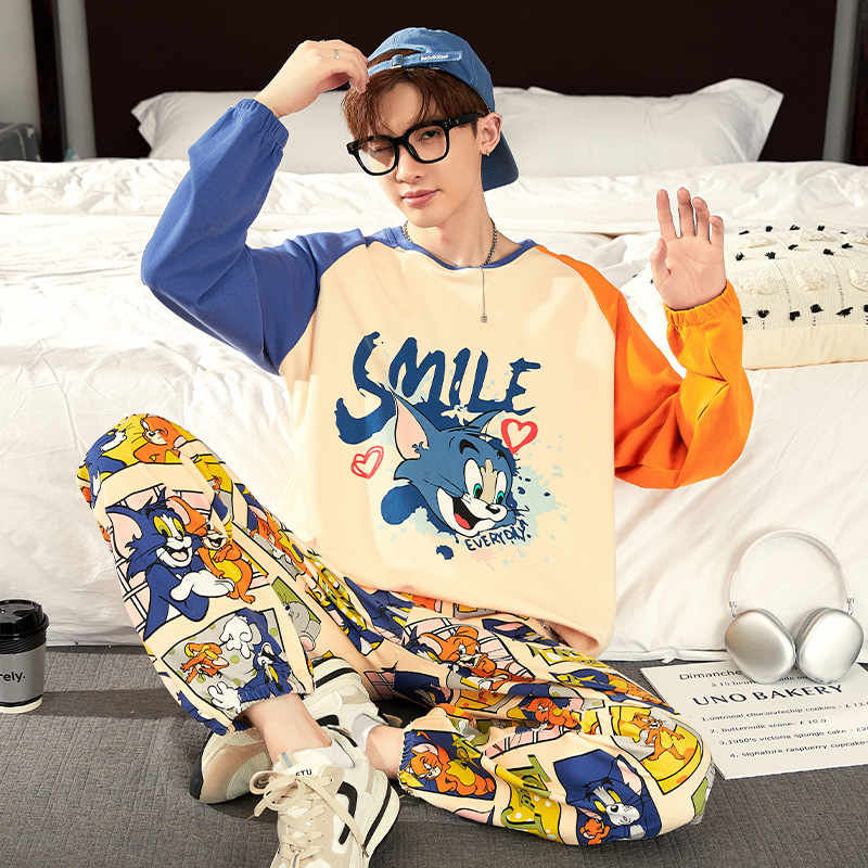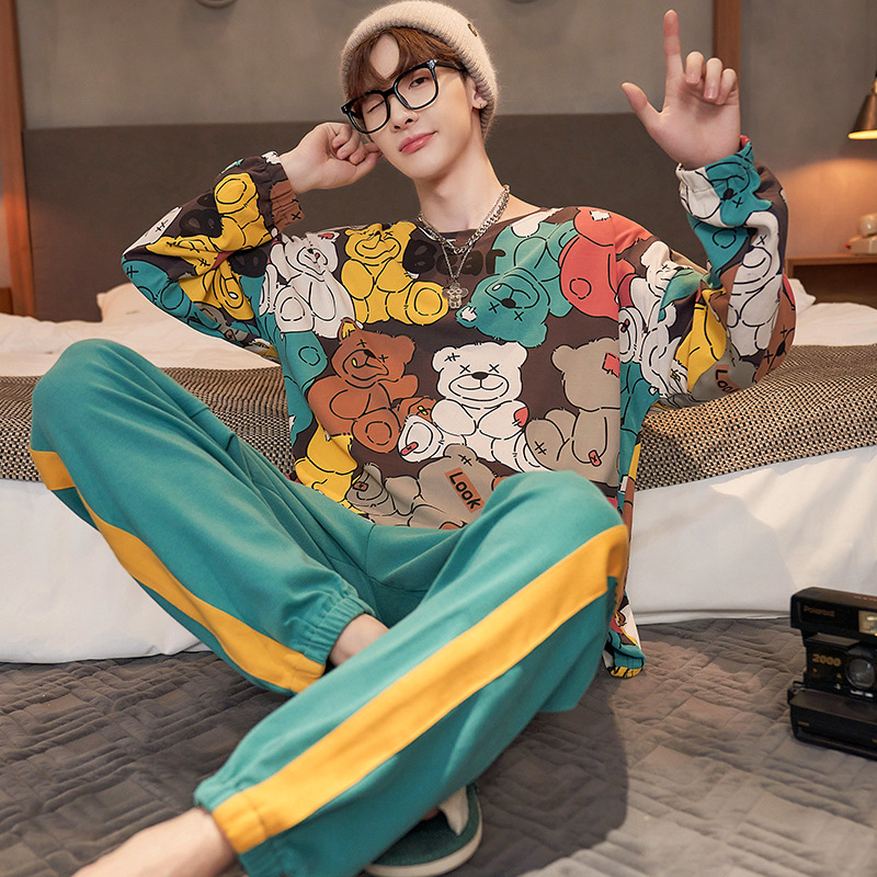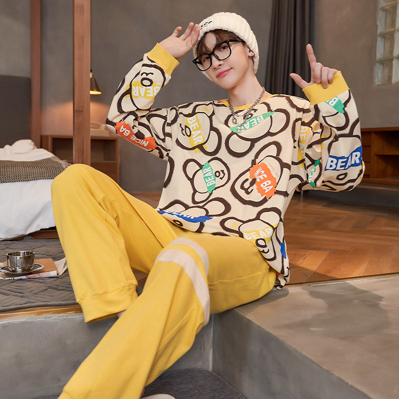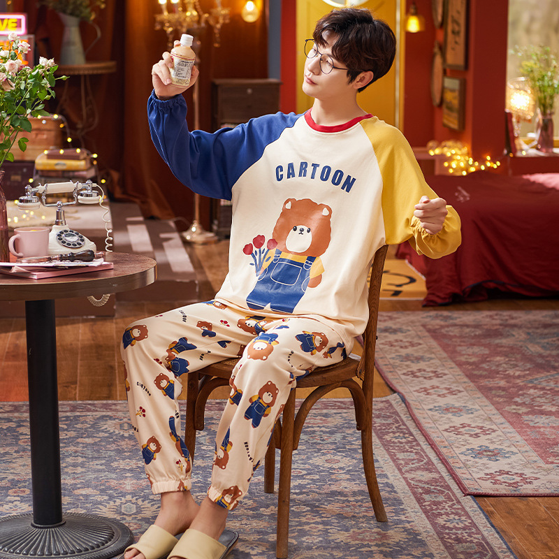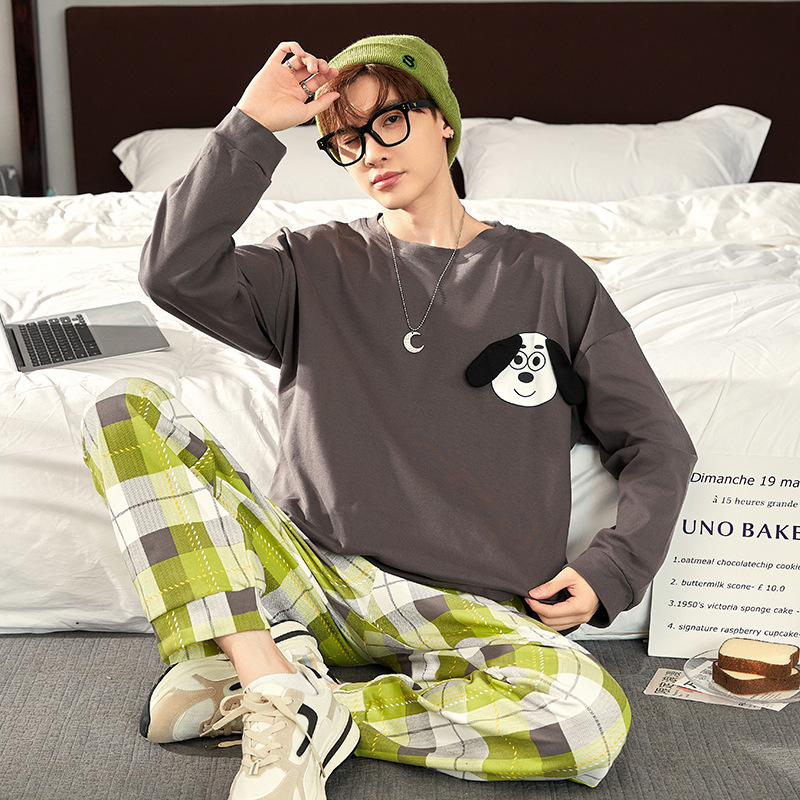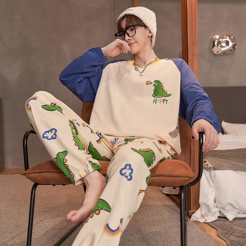 Главная страница > Хлопчатобумажная пижама мужская весна и осень длинные рукава длинные брюки хлопчатобумажный набор 2024 новая свободная домашняя одежда мужская