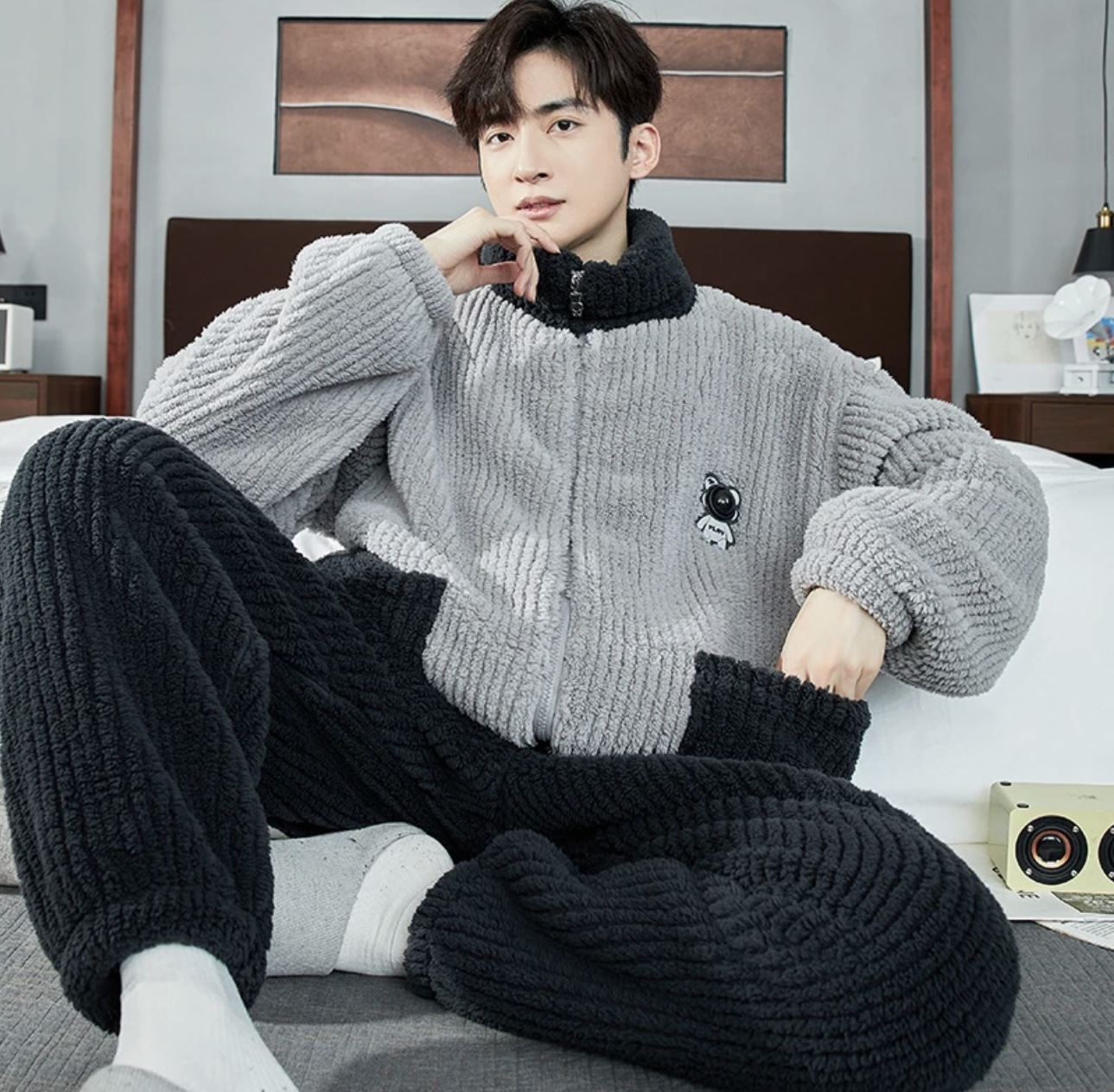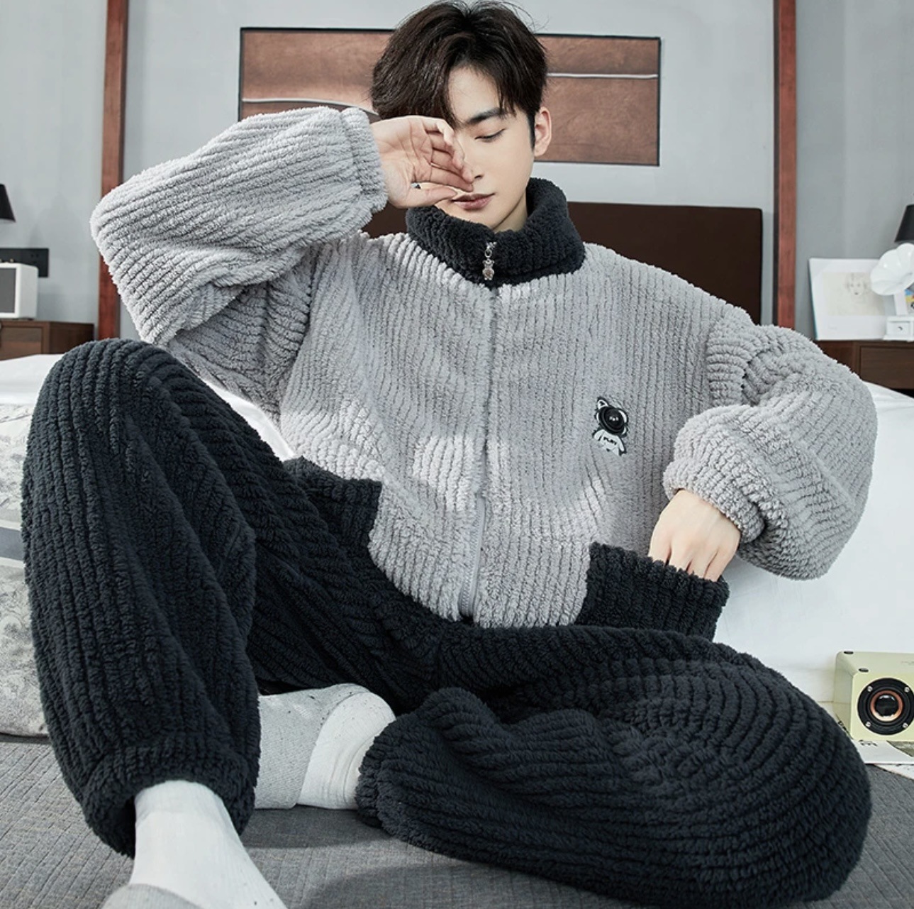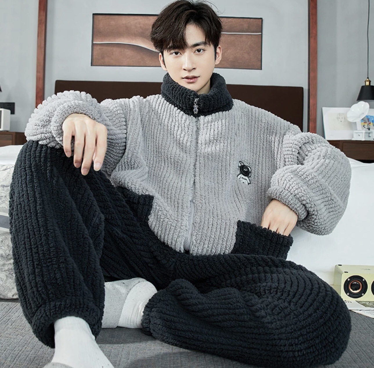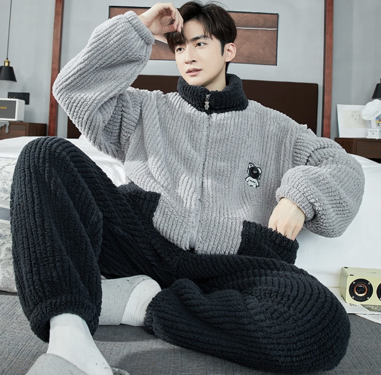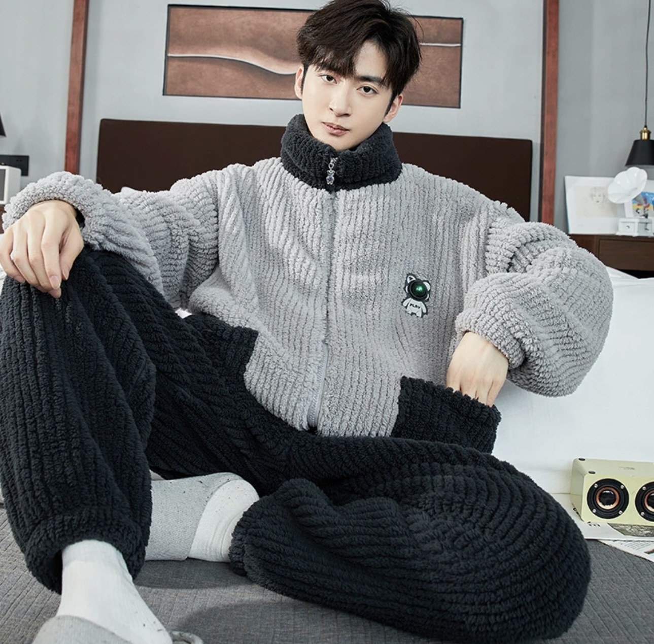 Главная страница > Осенне-зимние пижамы из кораллового флиса, мужская верхняя одежда, костюм на флисовой подкладке, Студенческая зимняя плюшевая теплая домашняя одежда