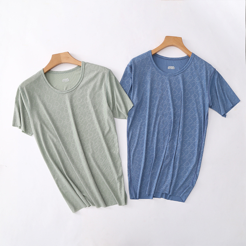 Главная страница > Летняя мужская пижама из ледяного шелка, пижама, свободный костюм, футболка с короткими рукавами и принтом, брюки с круглым вырезом, домашняя одежда, костюм
