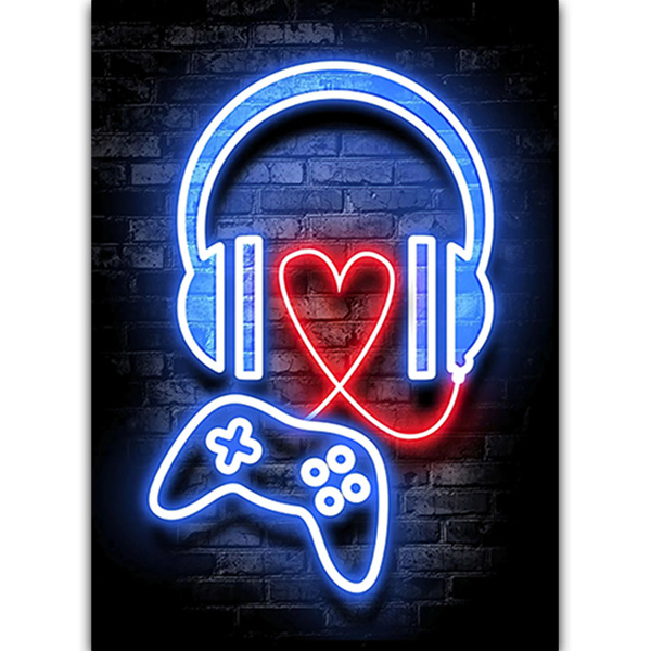Трансграничные Горячие плакаты с киберспортивными играми Английская струйная печать Холст ядро неоновые огни Интернет-кафе висят картины оптом