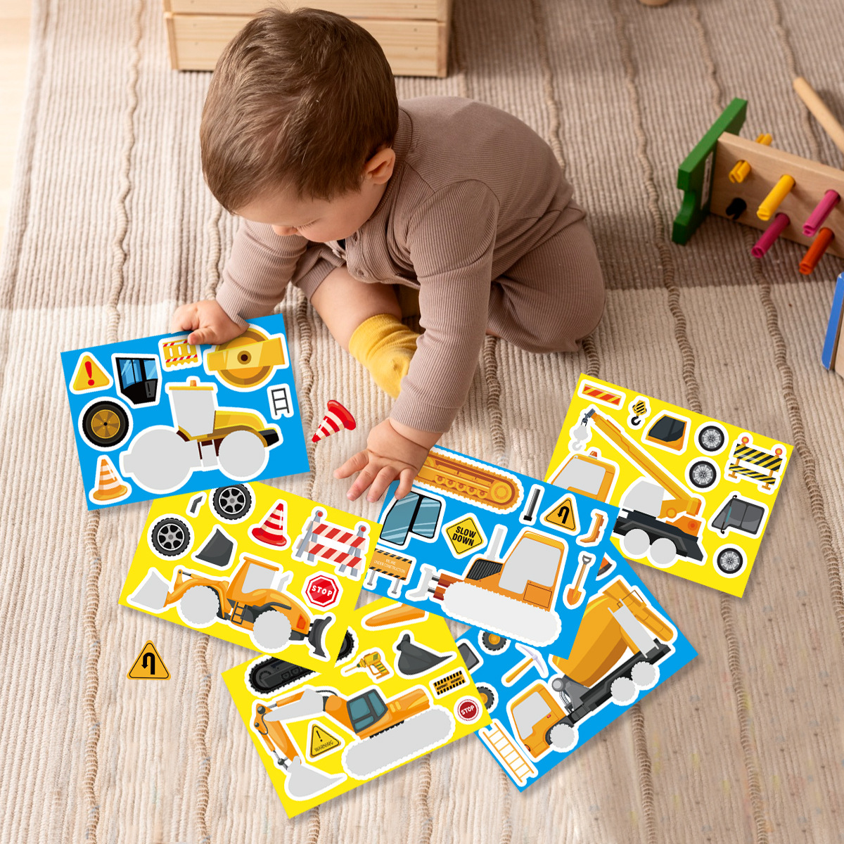 Главная страница > Трансграничные инженерные наклейки на транспортные средства экскаватор головоломка DIY наклейки для лица детские наклейки Подарочная сумка наклейки